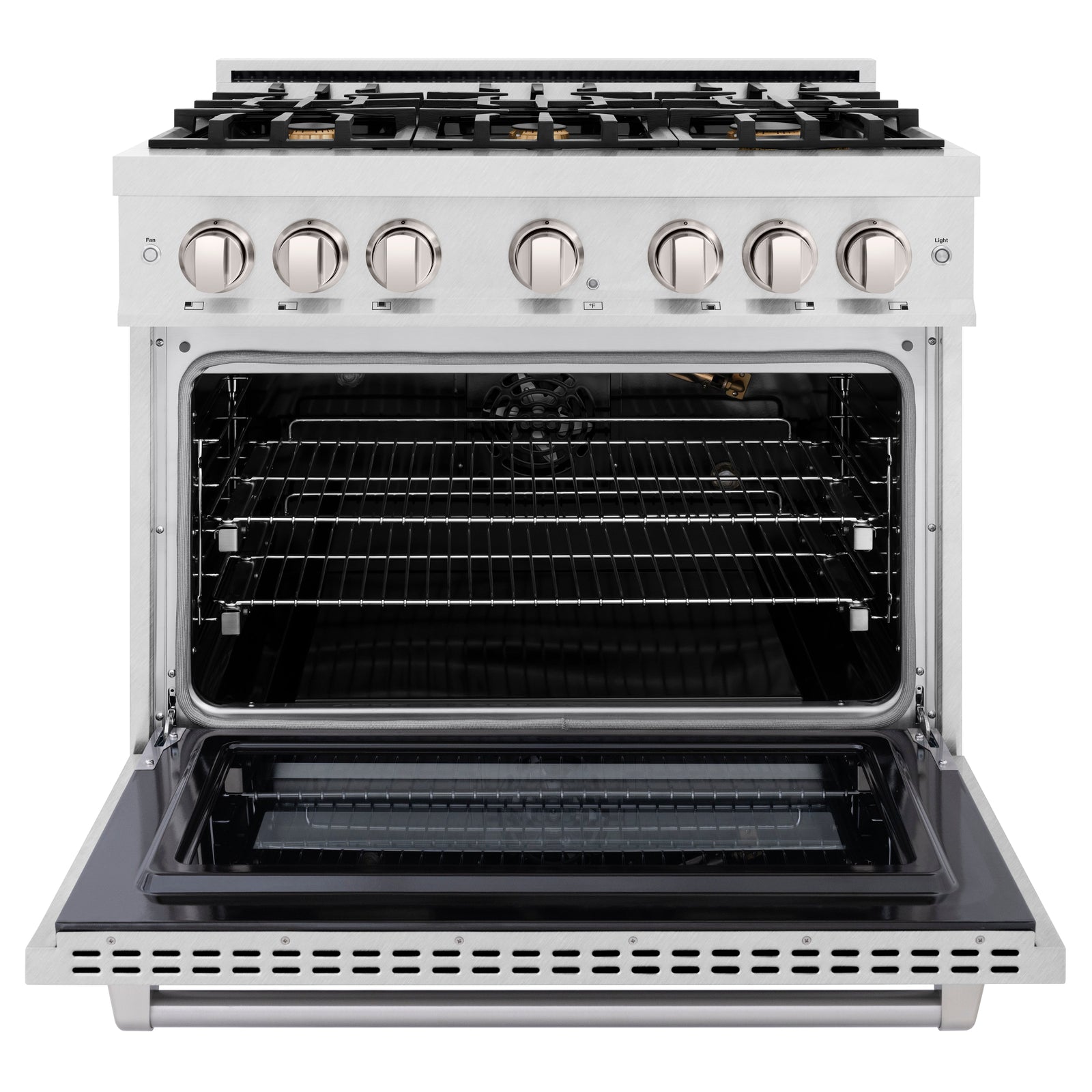 ZLINE 36" 5.2 cu. ft. Select Gas Range in DuraSnow® Stainless Steel with 6 Brass Burners, HGRS-BR-36