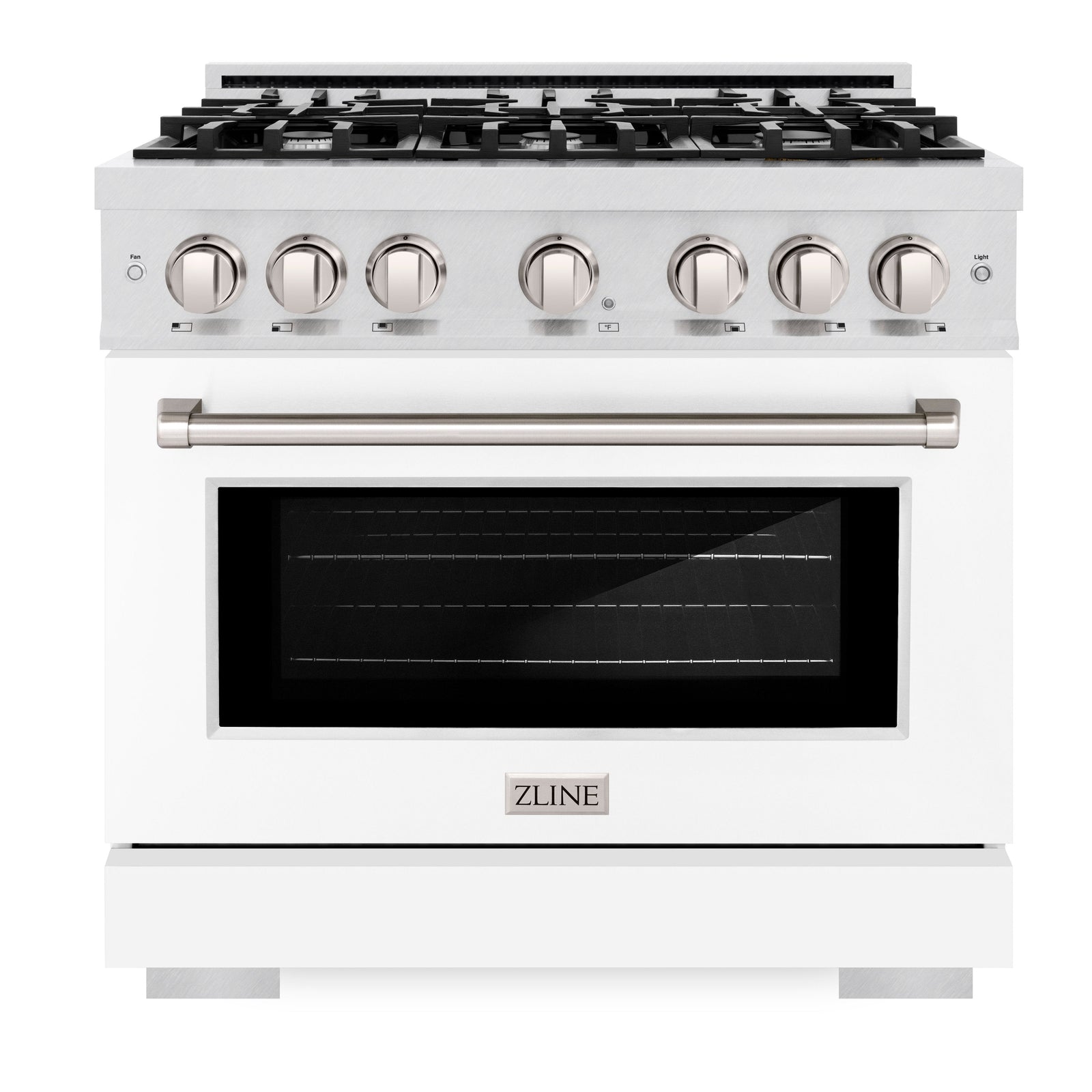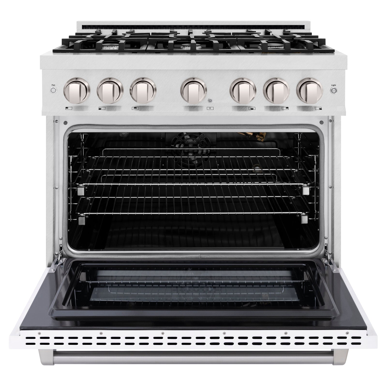 ZLINE 36" 5.2 cu. ft. Select Gas Range with 6 Burners in DuraSnow® Stainless Steel with White Matte Door, HGRS-WM-36