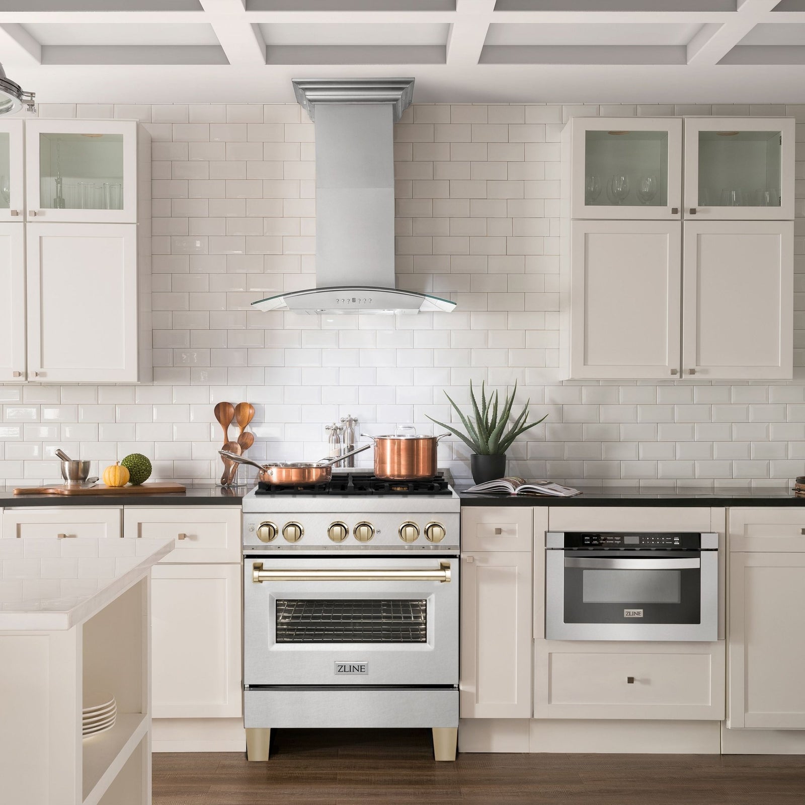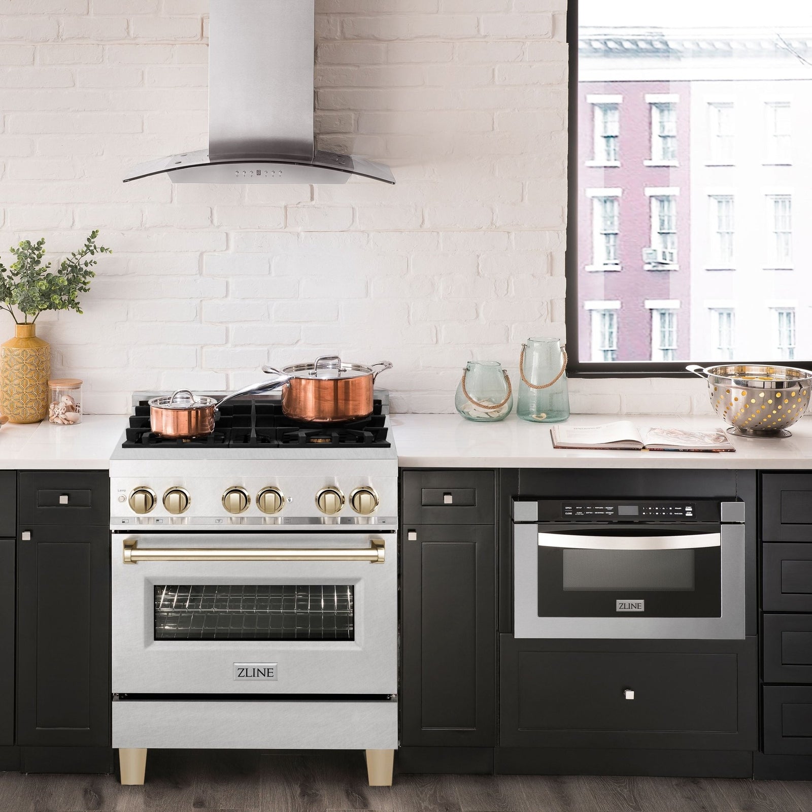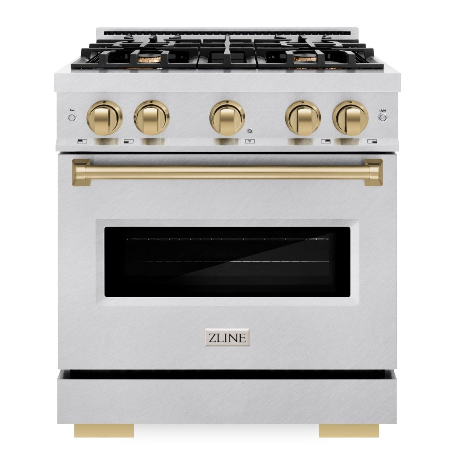 ZLINE Autograph Edition 30 in. Range with Gas Burner/Electric Oven in DuraSnow® Stainless Steel with Gold Accents, RASZ-SN-30-G