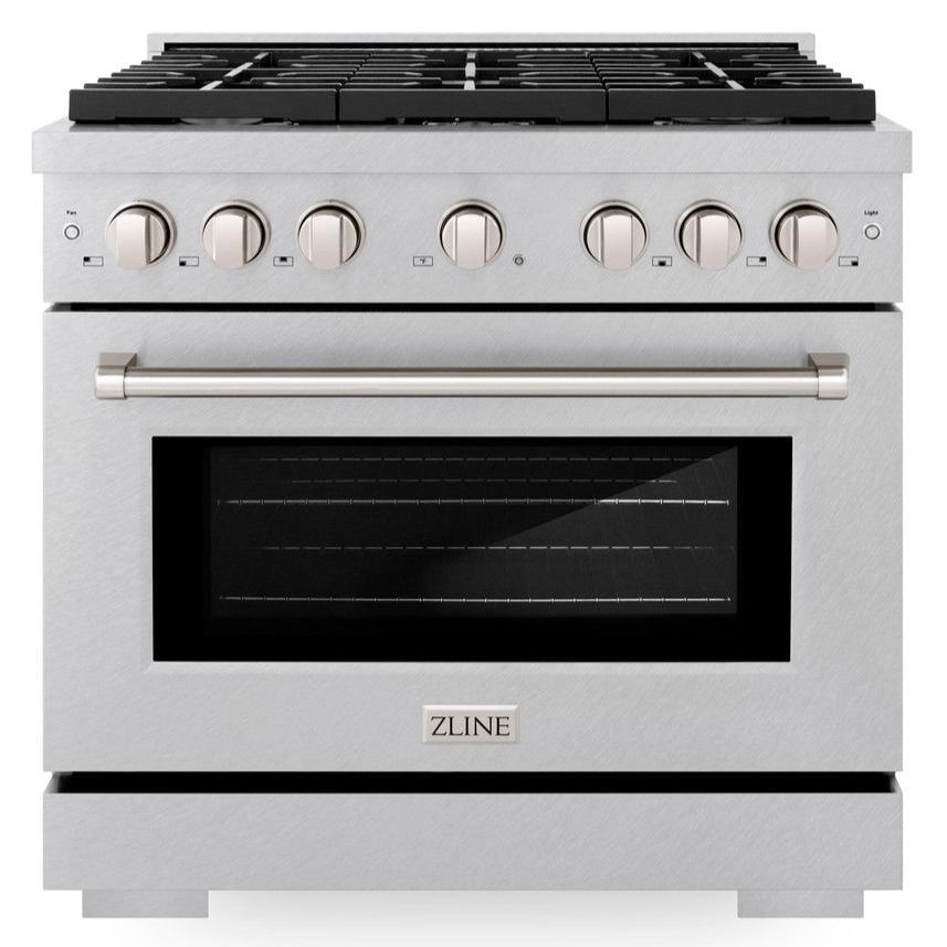 ZLINE 36" 5.2 cu. ft. Select Gas Range with 6 Burners in DuraSnow® Stainless Steel, HGRS-36