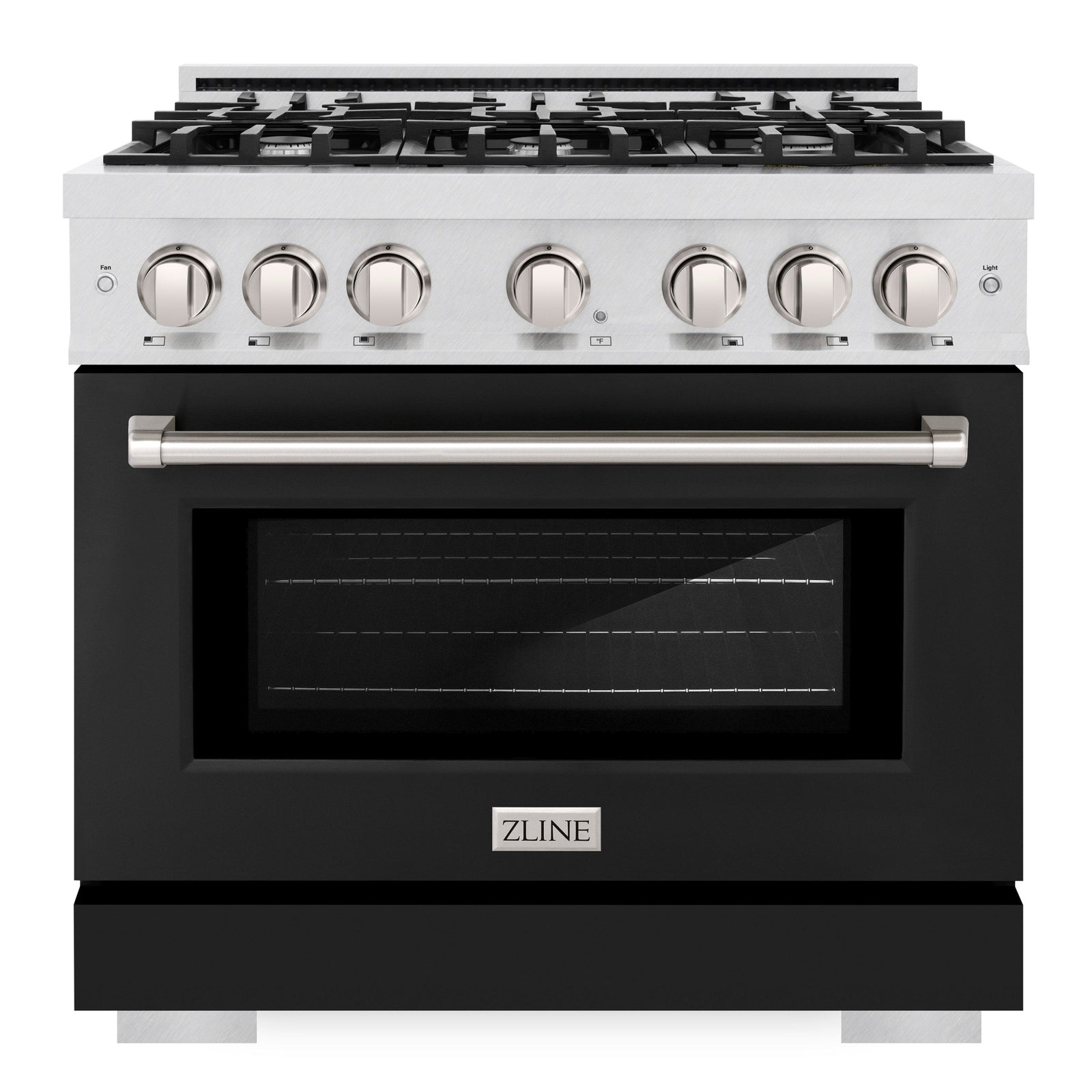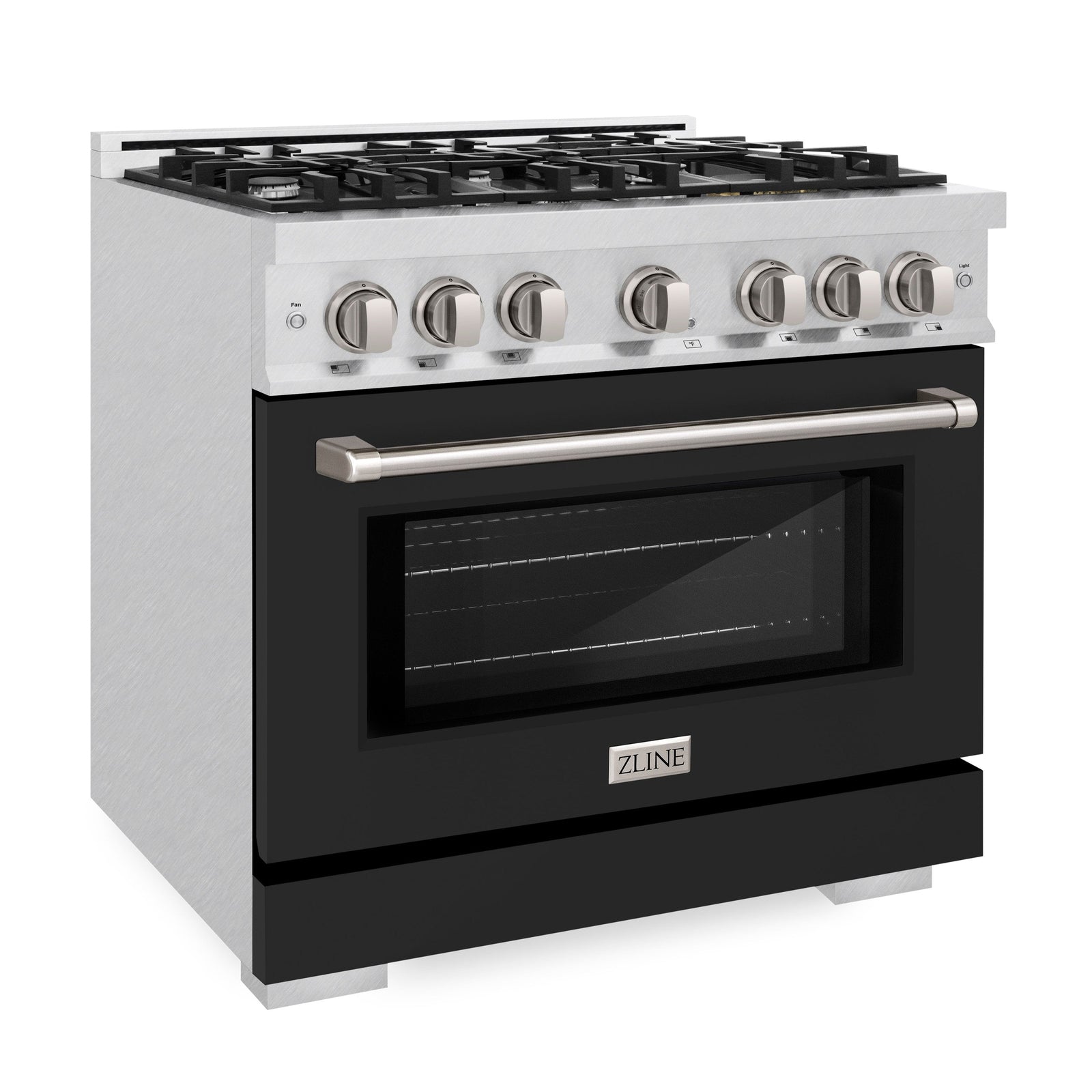 ZLINE 36" 5.2 cu. ft. Paramount Dual Fuel Range with 6 Burners in DuraSnow® Stainless Steel with Black Matte Door, SDRS-BLM-36