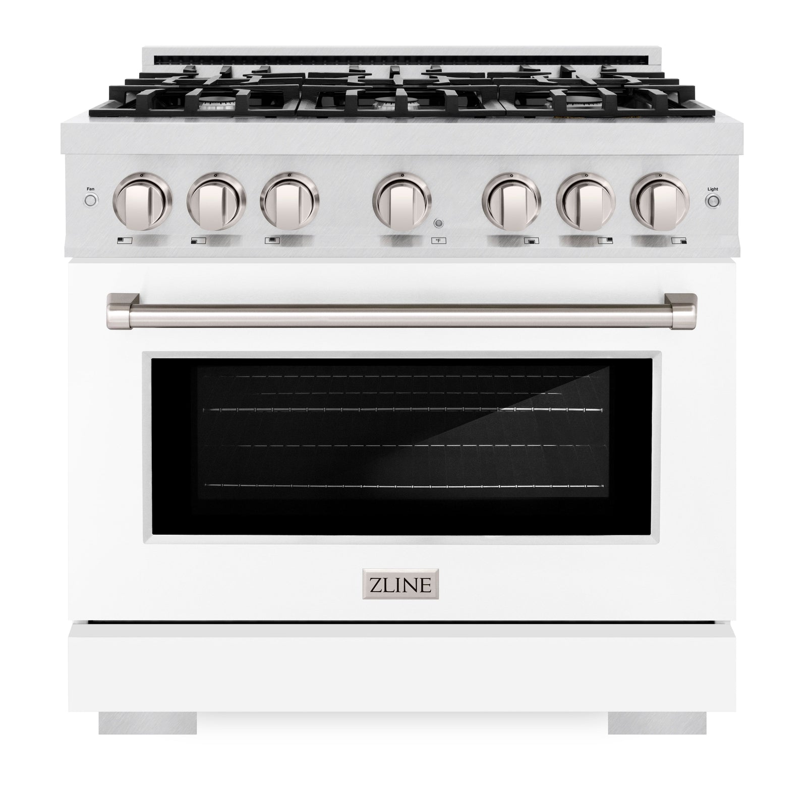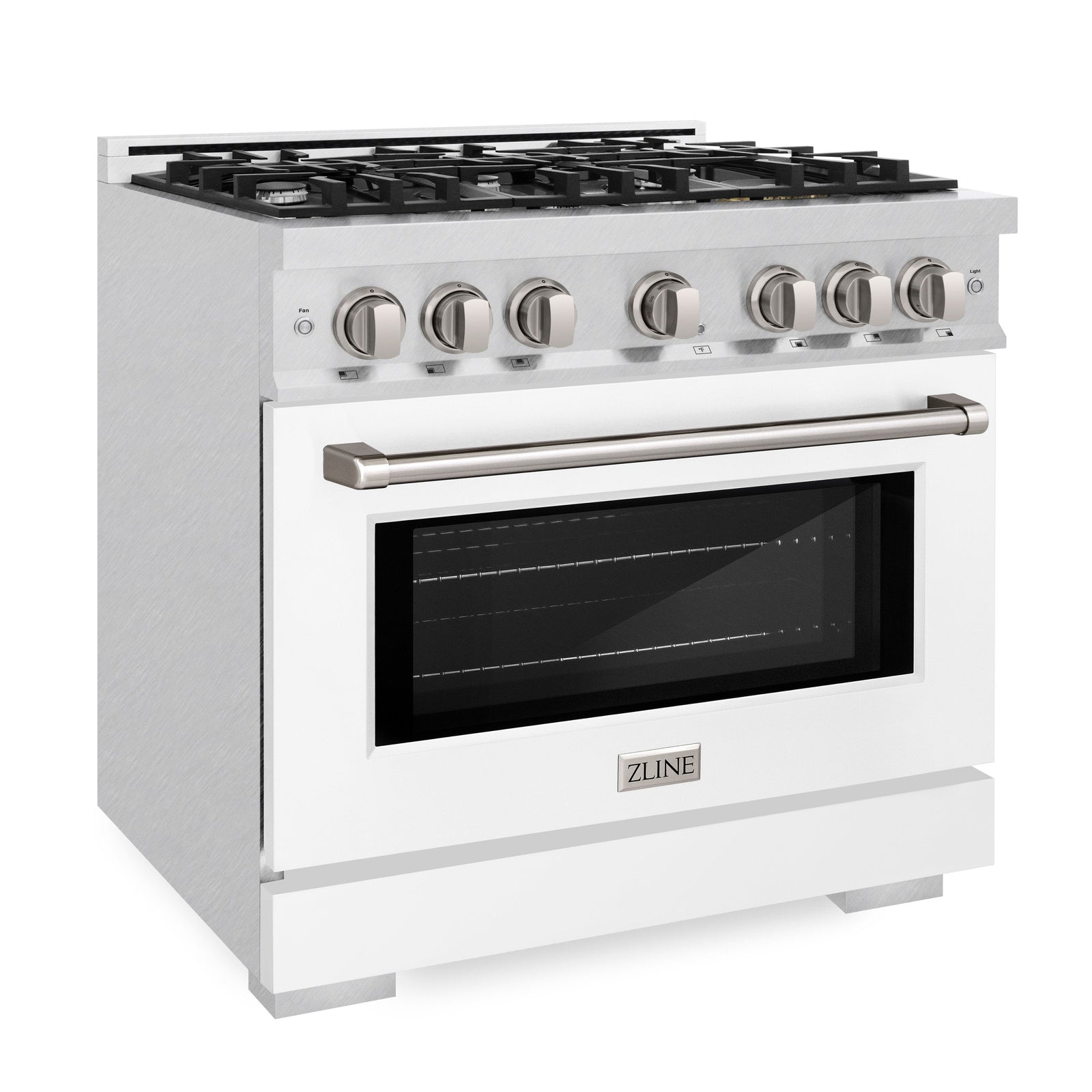 ZLINE 36" 5.2 cu. ft. Paramount Dual Fuel Range with 6 Burners in DuraSnow® Stainless Steel with White Matte Door, SDRS-WM-36