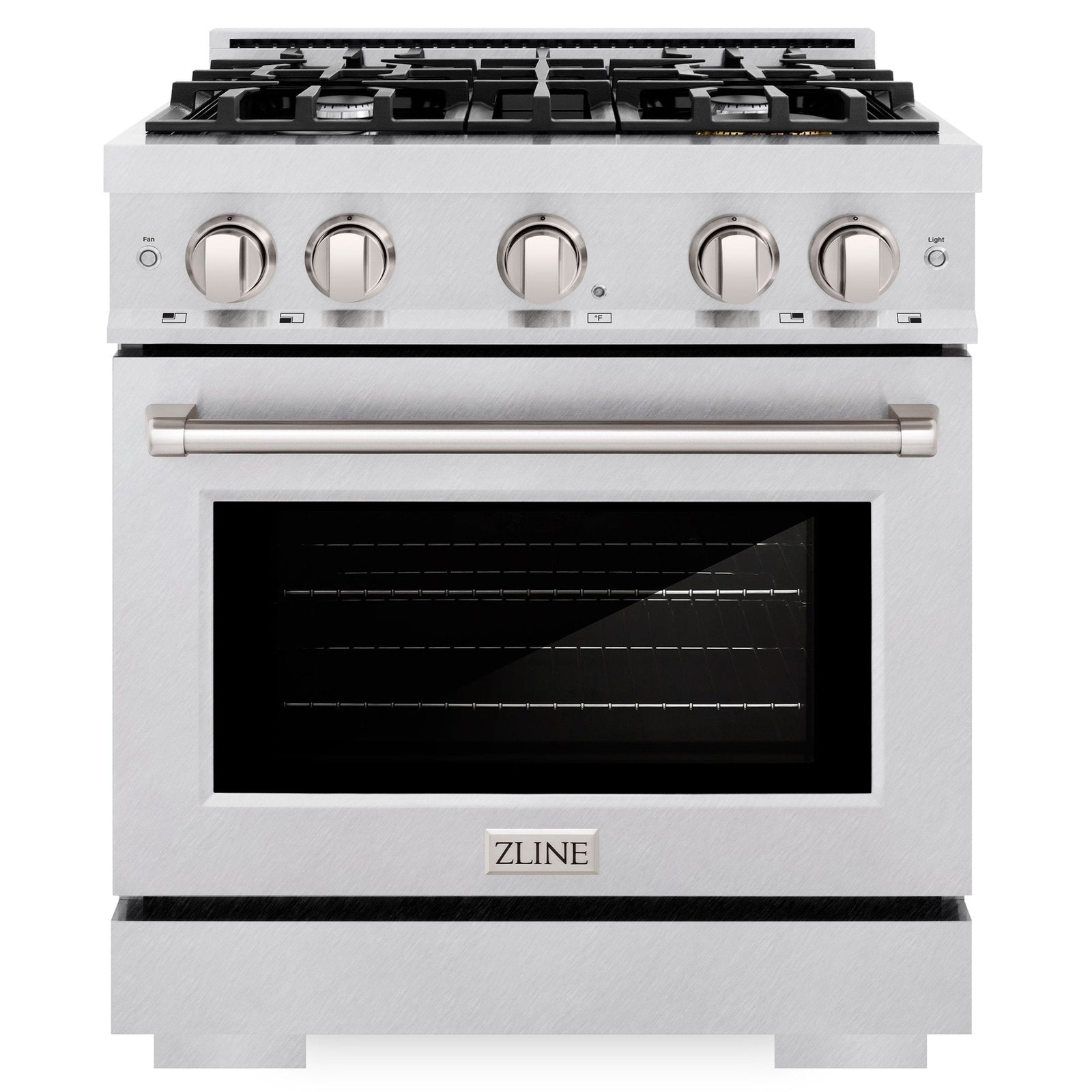 ZLINE Kitchen and Bath 30 in. Professional Gas Burner/Electric Oven in DuraSnow® Stainless, RAS-SN-30