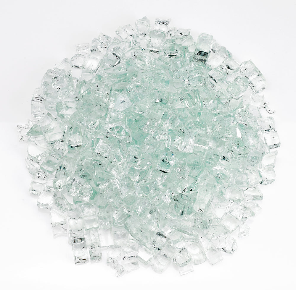 This 1/2" clear fire glass is definitely a favorite among homeowners and designers alike. Its ice-like quality allows it to blend perfectly with any type of décor and color scheme.
