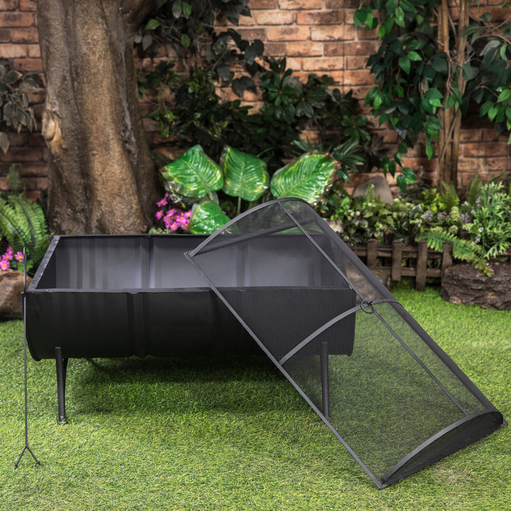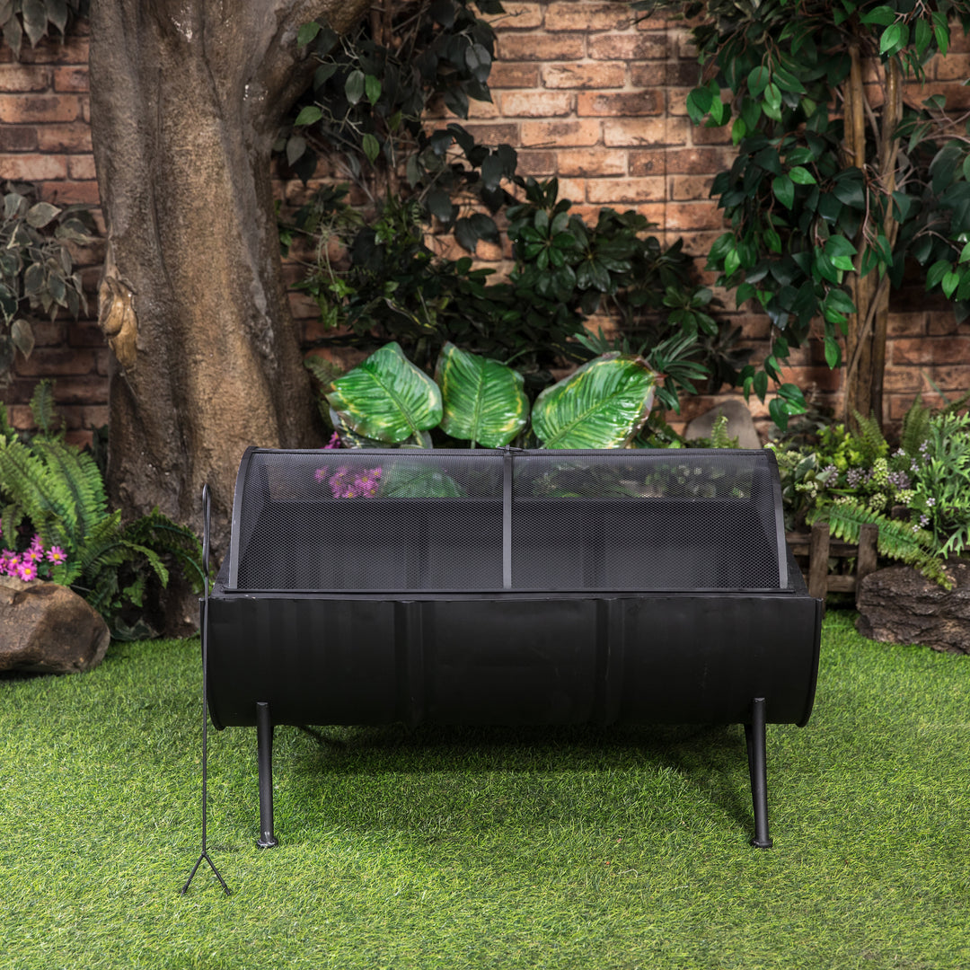 35 Inch Metal Barrel Wood Burner fire pit made of high temperature powder coated steel is weather resistant. Sturdy design illuminates your evening and ensures consistent air intake for abundant flames. Spending a cold wintry evening with your loved ones accompanied by this wood-burning fire pit grill! Constructed of heat-resistant painted metal that can withstand 752℉-1112℉.
