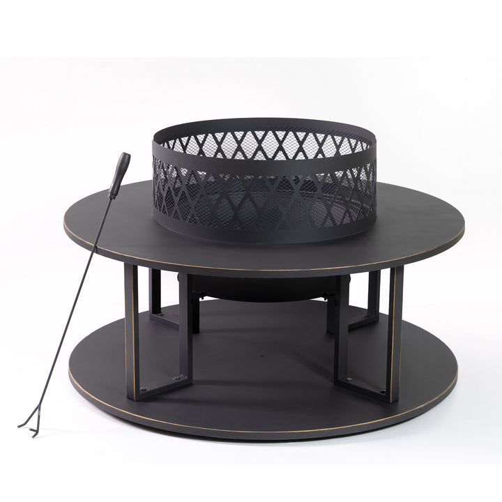 Introducing the Deko Living 38-Inch Diameter Outdoor Steel Woodburning Fire Pit with Log Storage – a versatile and functional centerpiece for your outdoor gatherings. Crafted with durability and convenience in mind, this fire pit provides warmth, ambiance, and a practical storage solution for firewood. Elevate your outdoor gatherings and create unforgettable memories, whether you're roasting marshmallows, sharing stories, or simply enjoying the starlit sky, this fire pit sets the stage for memorable moments under the open sky.