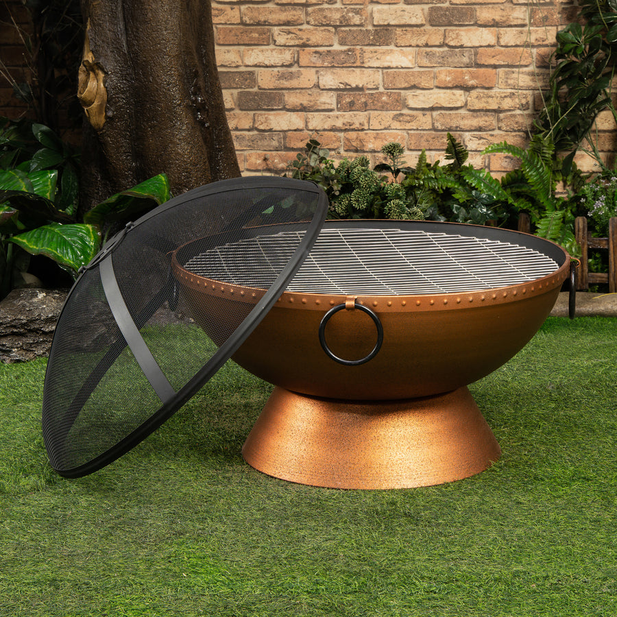 Introducing the Deko Living Outdoor Round Metal Woodburning FireBowl/FirePit with Cooking Grill—an ideal centerpiece for your backyard gatherings and cozy evenings under the stars. This versatile fire pit features a sturdy metal construction with a durable powder thermospray finish, ensuring it is both rust-resistant and built to last. Enjoy the warmth and ambiance of a traditional woodburning fire while also taking advantage of the included cooking grill, perfect for grilling your favorite outdoor meals.