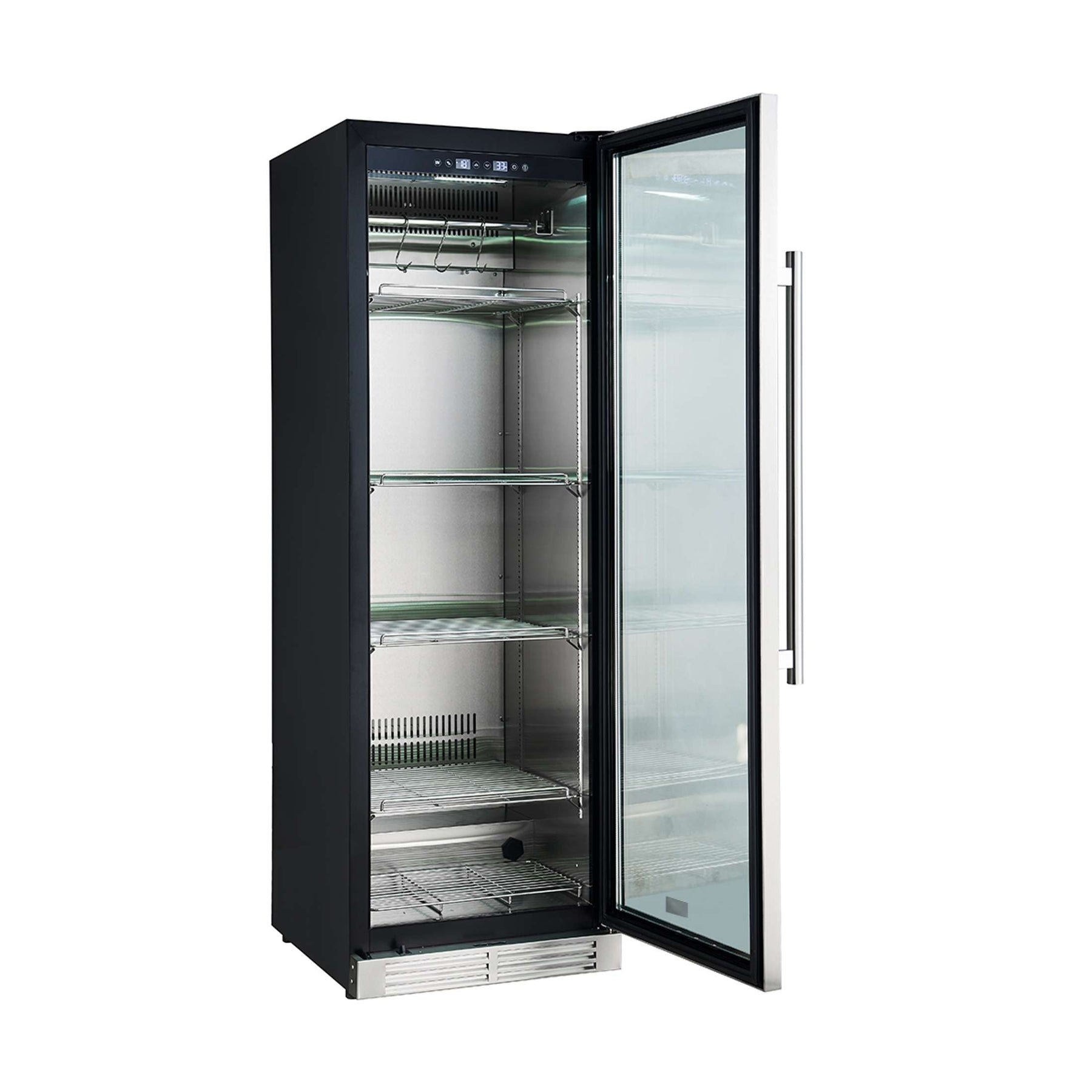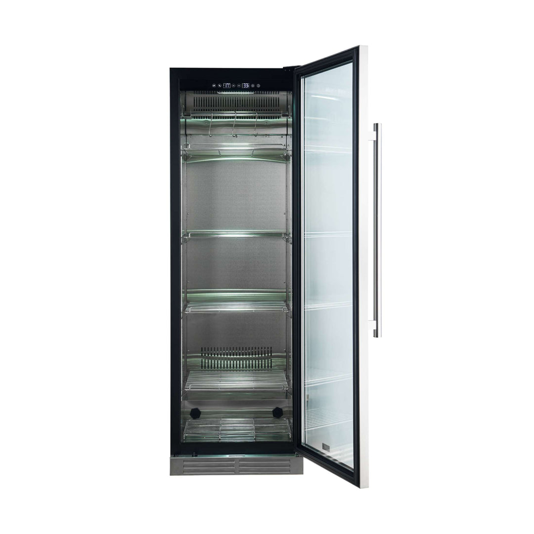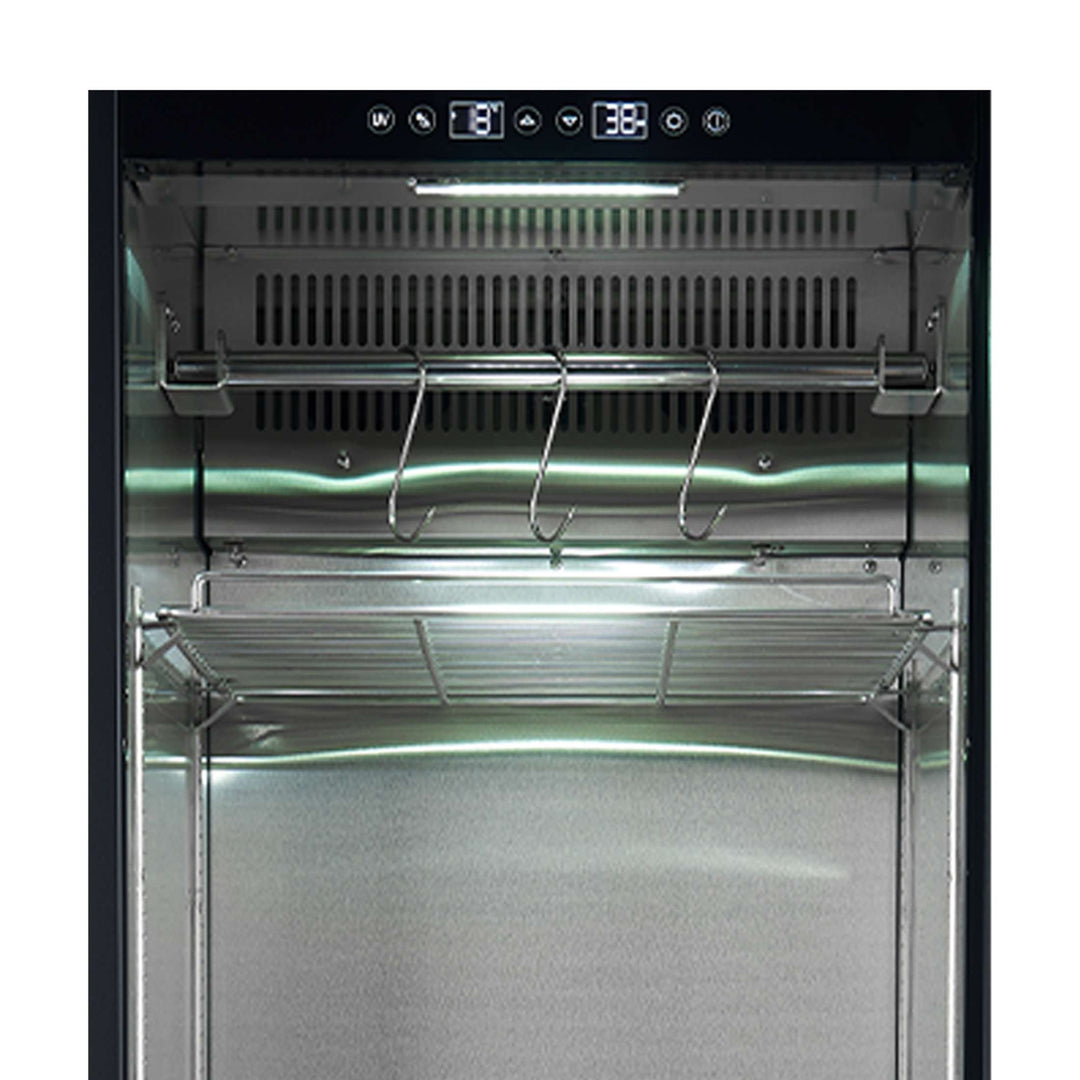 Experience the art of dry-aging with Forno’s Asciutto Asciutto 24-Inch Dry Aging Cabinet. With a spacious 14.66 cu.ft. storage, this unit features a corrosion-resistant stainless steel 304 interior, built to withstand daily use. The energy-saving compressor ensures quiet, precise temperature control, while dual evaporators provide optimal air circulation. UVC sterilization effectively eliminates bacteria, and a charcoal filter neutralizes odors. The built-in door lock and door alarm ensure a secure environment for dry-aging. The touch control panel, UV door film, and adjustable shelves make this the perfect solution for serious culinary professionals. Lower the cost of living with Forno.