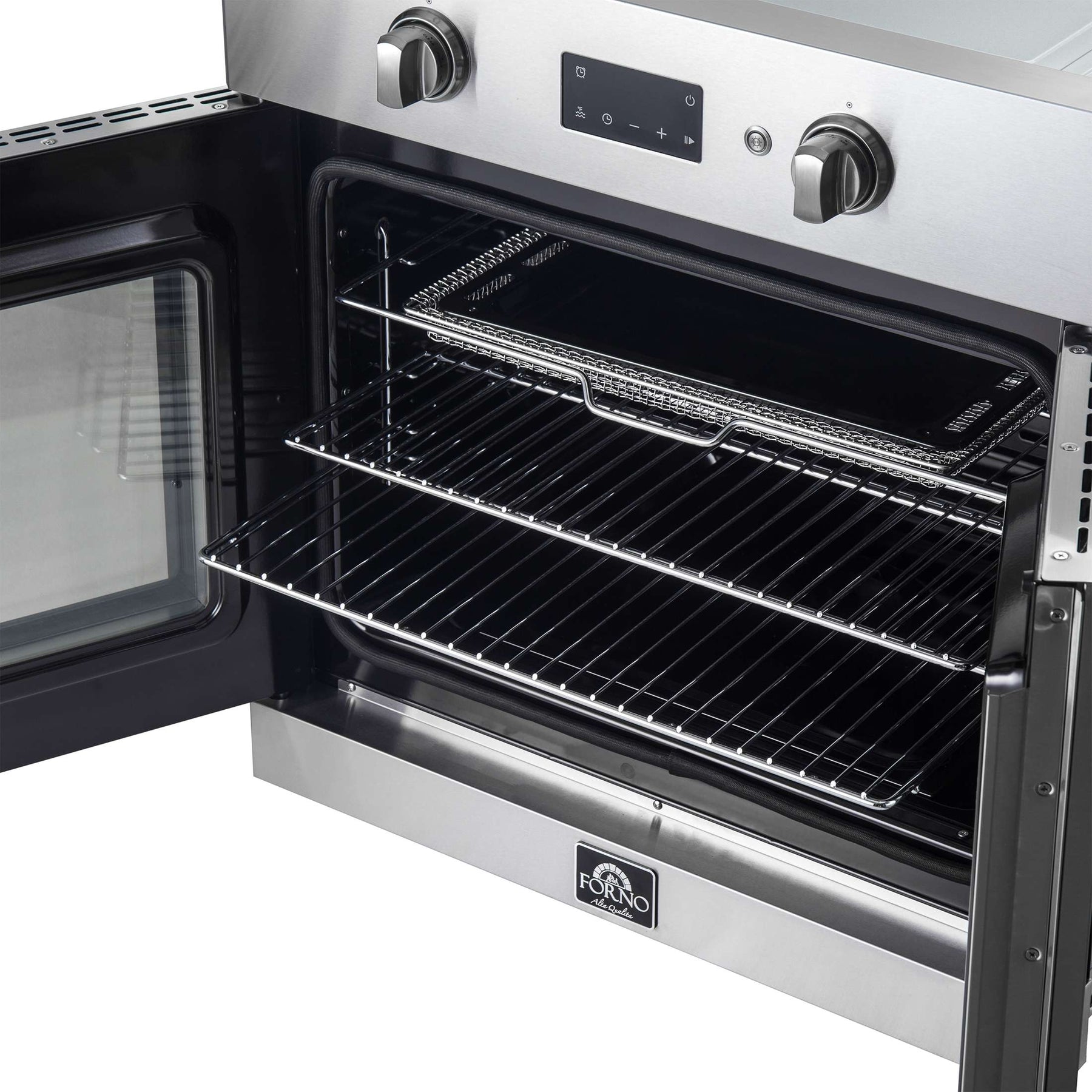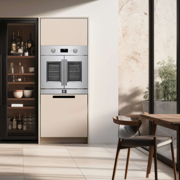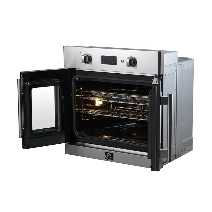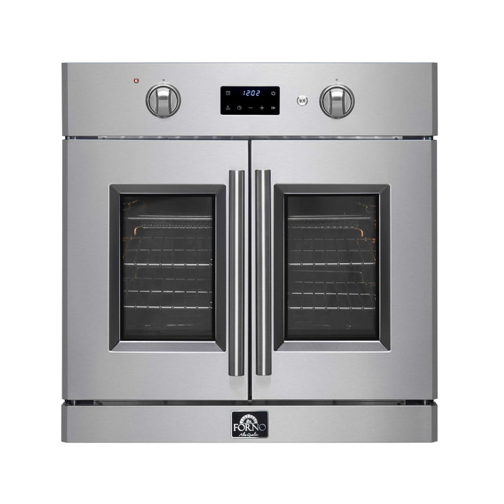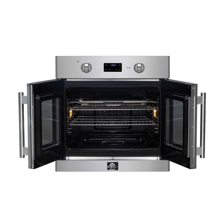 Timeless elegance meets exceptional performance with the Forno Asti 30” French Door Wall Oven. The 3.68 cu. ft. true convection oven guarantees a perfectly even cooking temperature, and the French door allows for easy one-handed access. Cook healthier meals with the integrated air-frying function, delivering a crispy meal with very little oil. Precision knobs ensure an optimum selection of functions and temperatures, while LED digital displays make it easy to adjust the timer and sous-vide mode. The black enamel interior resists stains, and the self-cleaning mode eliminates the inconvenience of manual cleaning. Created for those who appreciate a blend of sophistication and performance, this oven transforms any kitchen at an affordable price.