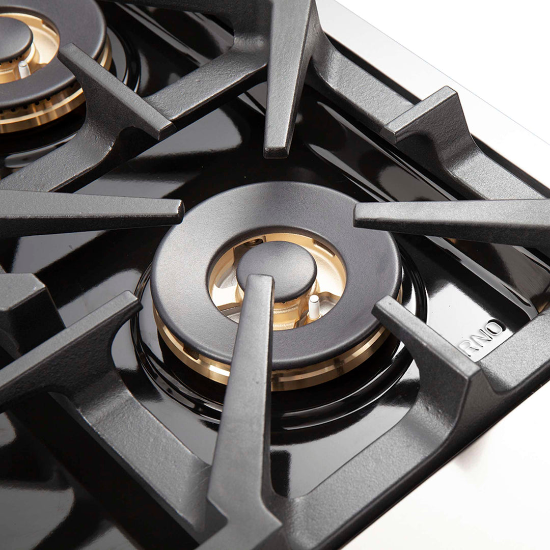 * Sealed Dual-Ring Brass Burners can achieve high heat searing or delicate simmering control