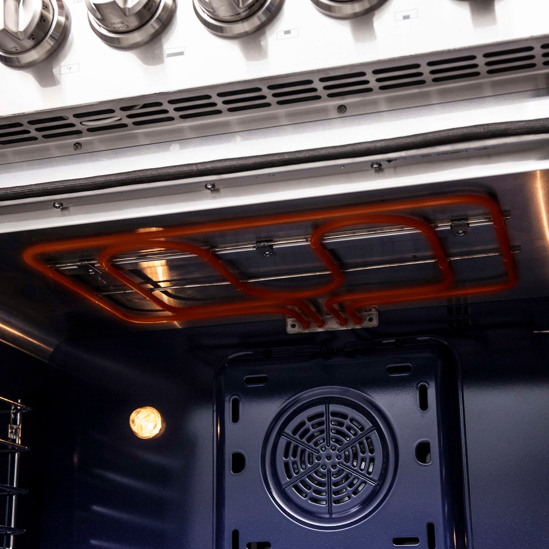 * 5.36 cu.ft. true convection oven with 6,300 Watt total broil and bake output