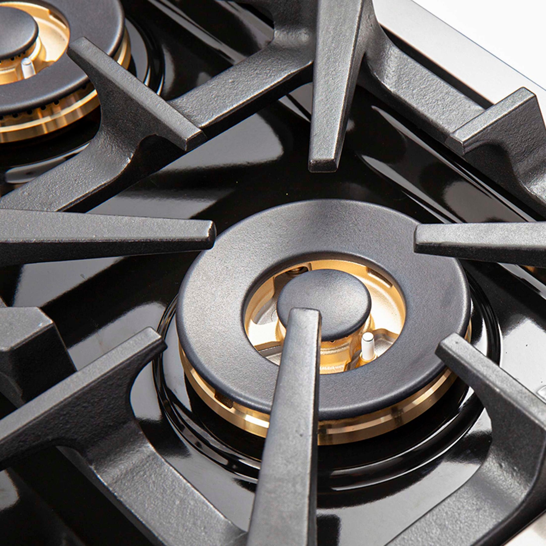 * Sealed Dual-Ring Brass Burners can achieve high heat searing or delicate simmering control
