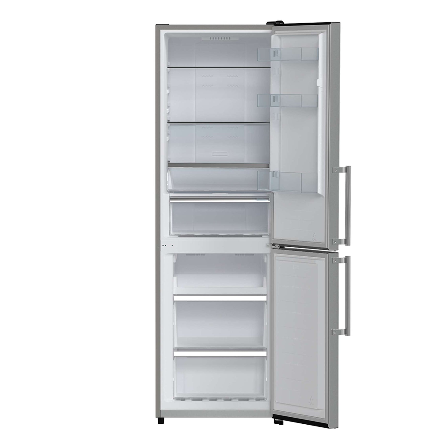 The Forno Guardia 23.4" Bottom Freezer Refrigerator offers a compact, space-saving design with a sleek stainless steel finish that complements any kitchen layout. With 10.8 cu. ft. of total capacity, the refrigerator compartment provides 7.4 cu. ft. of organized storage, including three adjustable glass shelves, a deli drawer, and a humidity-controlled crisper to keep produce fresh longer. The 3.4 cu. ft. bottom freezer features three spacious, removable drawer baskets for easy access and cleaning. Equipped with a Super Freeze function, it quickly locks in freshness while conserving energy. Energy Star Certified and designed for optimal efficiency, this refrigerator includes high-efficiency LED lighting to improve visibility and reduce food waste.