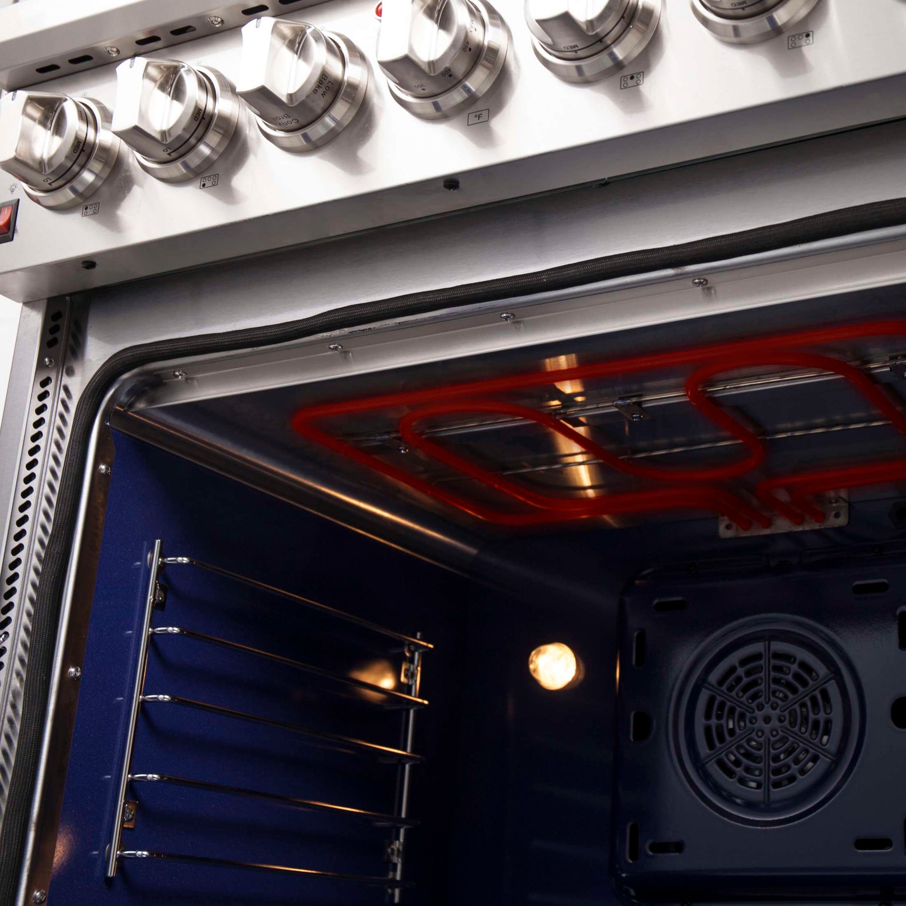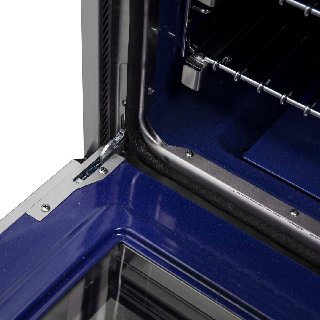* Speckled blue enamel oven of 4.32 Cu.Ft. with true convection of 1,500 watts Oven & total bake and broil output of 4,800 Watts.
