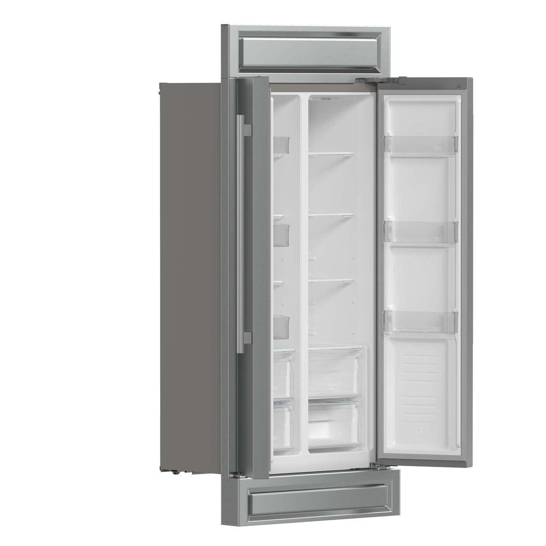 * 9.54 cu.ft of fresh food storage is equipped with 3 adjustable glass shelves, 2 crisper drawers, 2 door basket bins and 1 door gallon bin.