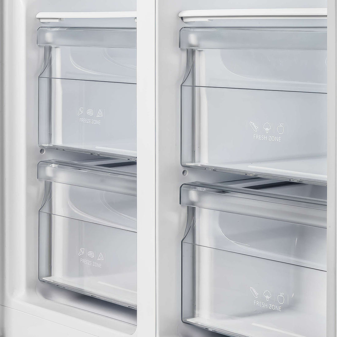 * Freezer compartment includes 4 spill-proof glass shelves, 2 storage drawers and 3 door bins.