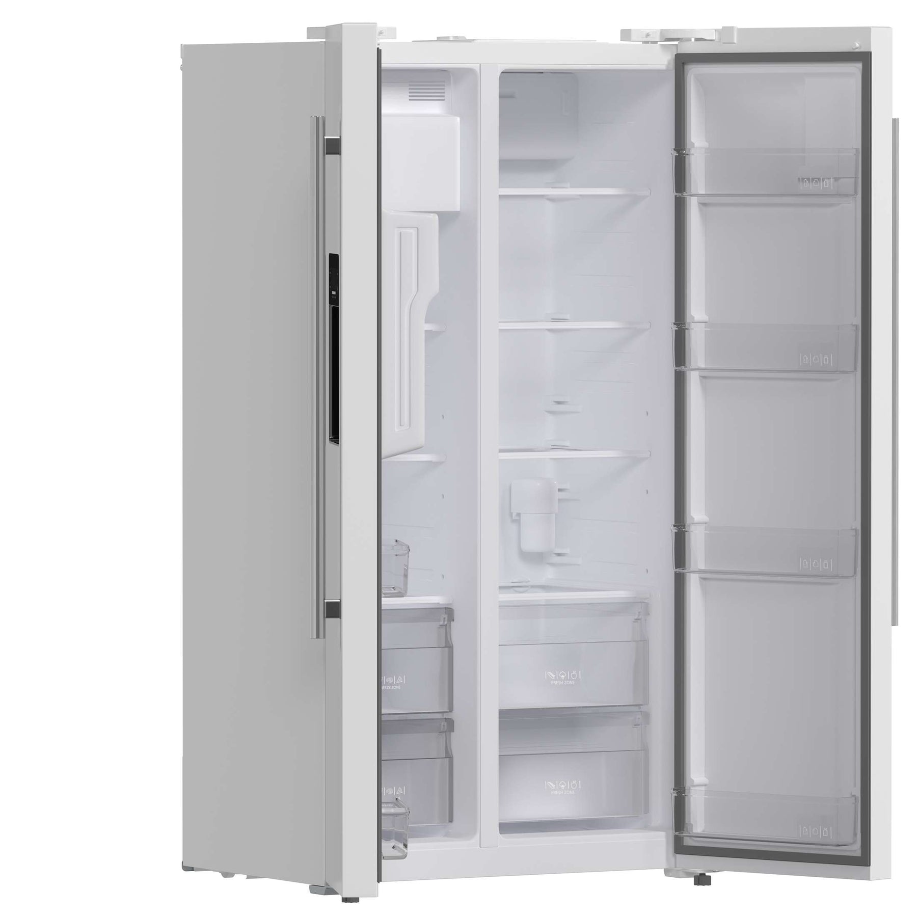 The Forno Salerno 36" Side-by-Side Refrigerator in white combines seamless integration with modern functionality. Designed for efficiency, its inverter compressor ensures quiet operation and precise temperature control, while the frost-free multi-air flow system keeps groceries fresh. With a spacious 20 cu. ft. capacity, this Energy Star Certified refrigerator features adjustable shelving, a 13.48 cu. ft. fresh food section with spill-proof shelves, storage drawers, and substantial door storage. The 6.53 cu. ft. freezer includes multiple shelves, bins, and drawers for easy organization. A built-in water and ice dispenser with a touchscreen panel offers effortless access to ice and temperature settings. Bright LED lighting enhances visibility while minimizing spoilage, making this refrigerator a stylish, high-performance addition to any kitchen.