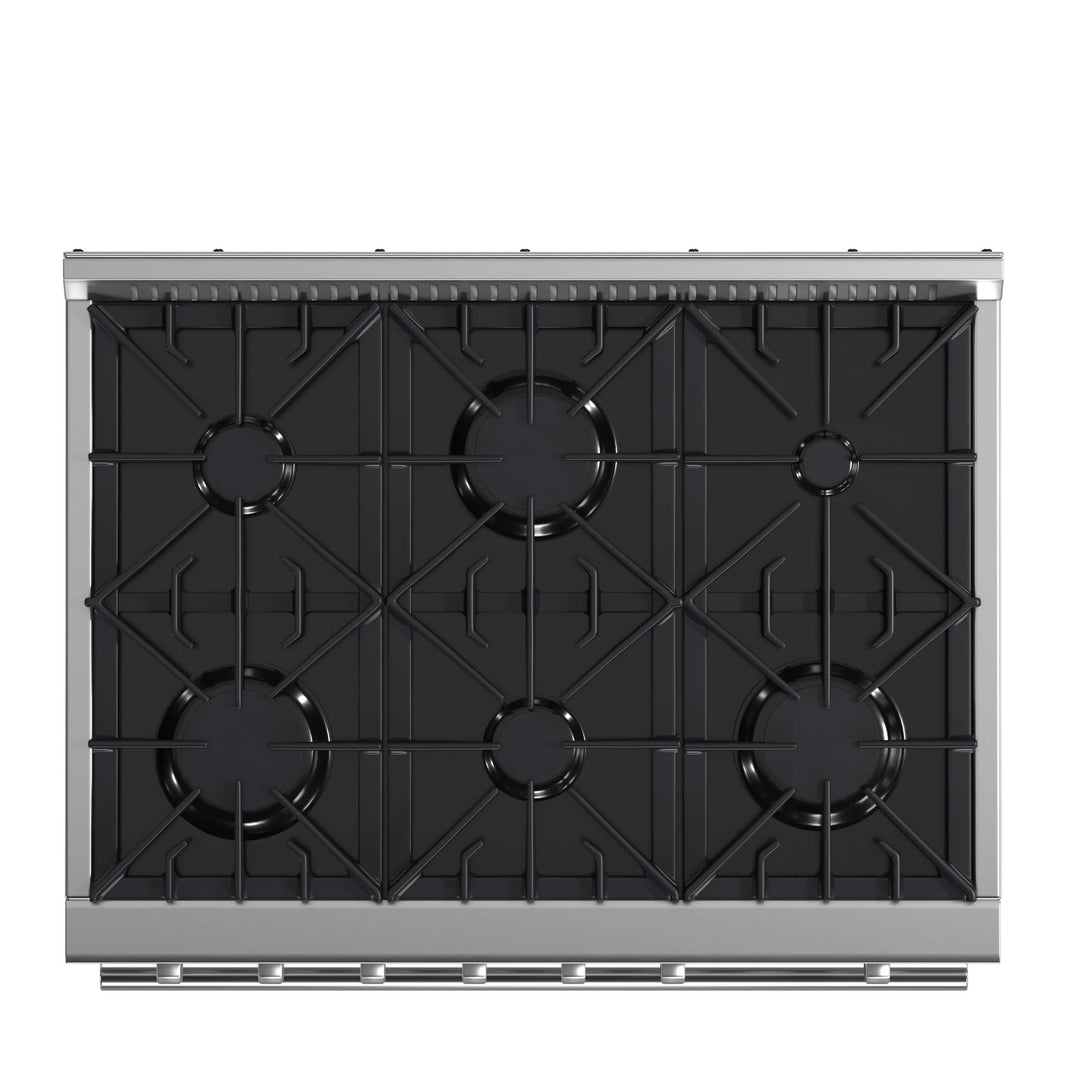 * Six sealed burners with a combined 67,000 BTU output meet all cooking demands.