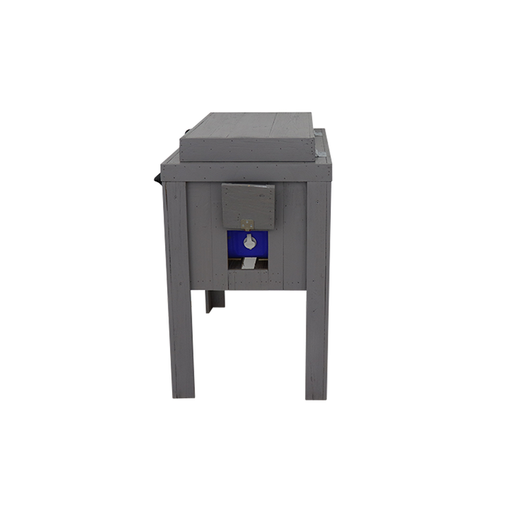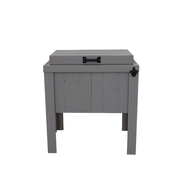 Made in Texas from weathered, repurposed “barn wood” allowing the product to maintain its rustic look for years to come. Each cooler contains a Coleman brand 48 quart cooler. The large capacity interior holds up to 63 cans and also has a convenient drain.