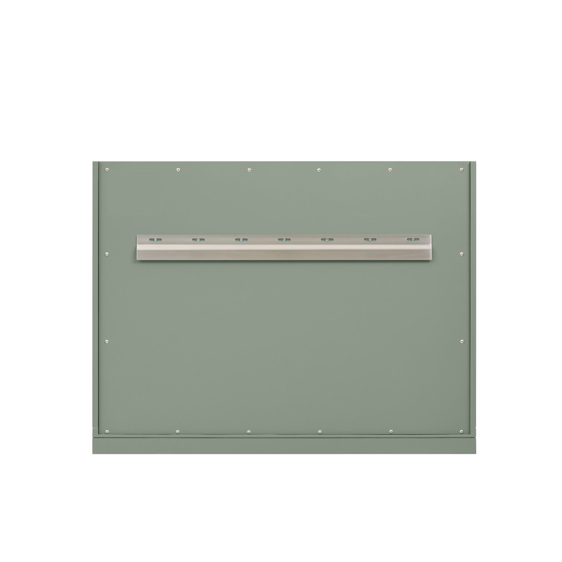 The sophisticated details and clean lines of the Chicago 36" Single Vanity by James Martin Vanities make it the perfect choice for any bathroom. Featuring a Smokey Celadon finish, this vanity offers ample storage with its two-door cabinet, adjustable interior shelf, and top-row tip-out drawer. Champagne Brass knobs and legs add a contemporary touch; or choose to forego the metal legs for a modern wall-mounted installation. The addition of a modern Arctic Fall Solid Surface top with undermount sink completes the look.