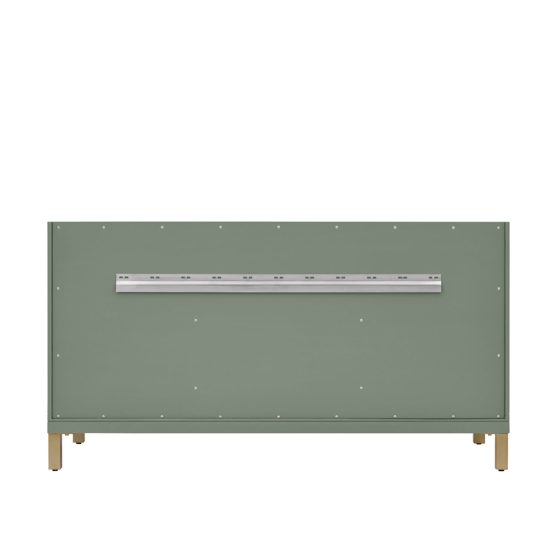 The sophisticated details and clean lines of the Chicago 60" Double Vanity by James Martin Vanities make it the perfect choice for any bathroom. Featuring a Smokey Celadon finish, this vanity offers ample storage with its double-door cabinet, adjustable interior shelves, and six drawers (two tip-outs, two standard, two double-deep). Champagne Brass knobs and legs add a contemporary touch; or choose to forego the metal legs for a modern wall-mounted installation. The addition of a beautiful Eternal Jasmine Pearl SilestoneĀ® top with undermount sinks completes the look.