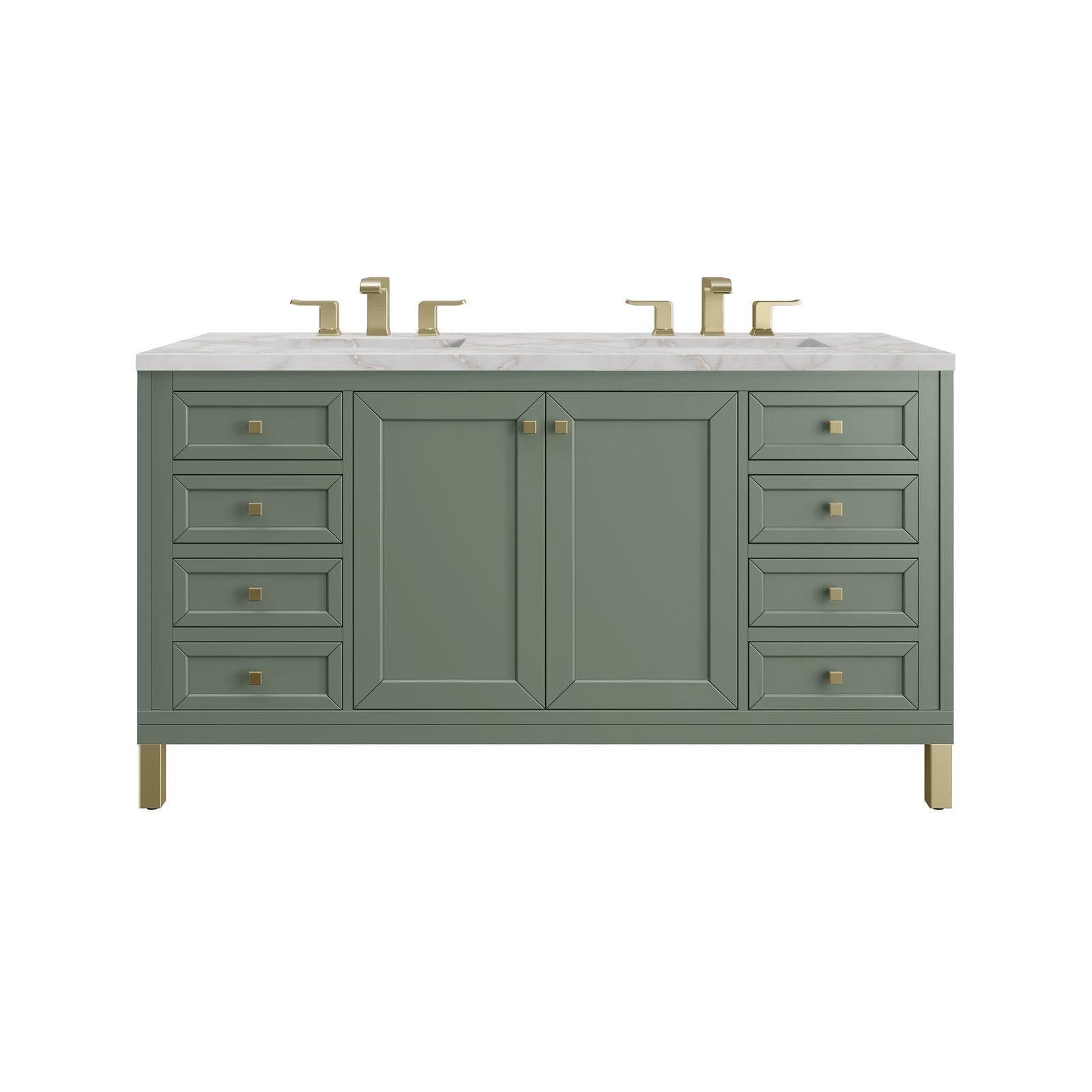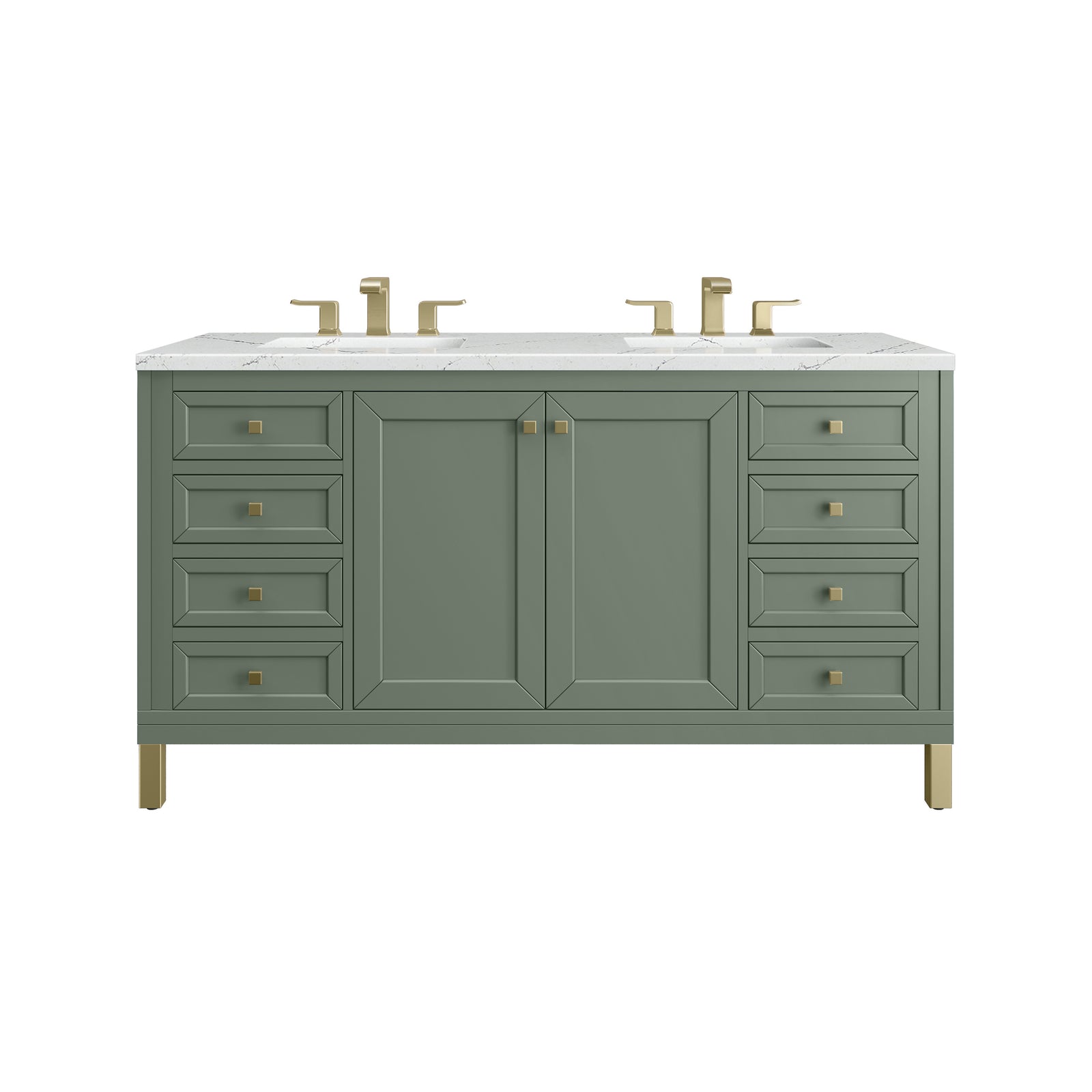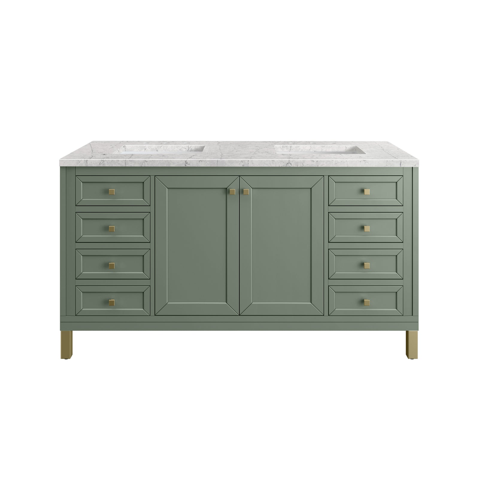 Chicago 60" Double Vanity, Smokey Celadon, w/ 3 CM Eternal Jasmine Pearl SilestoneĀ® Top