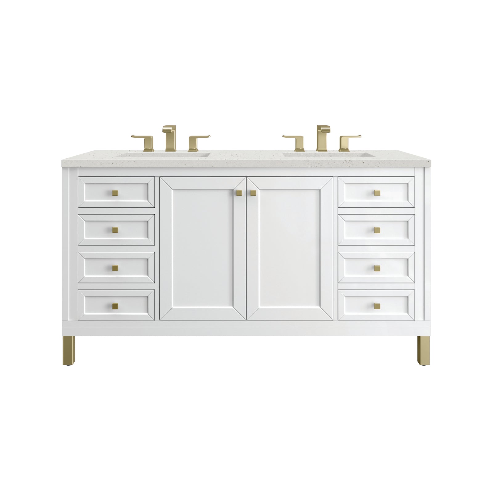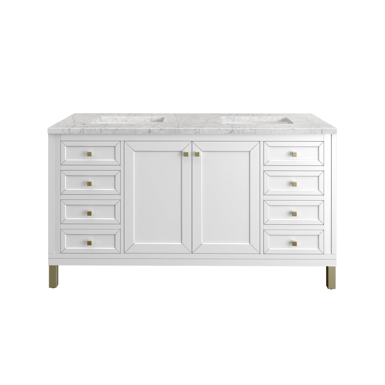 Chicago 60" Double Vanity, Glossy White, w/ 3 CM Eternal Jasmine Pearl SilestoneĀ® Top