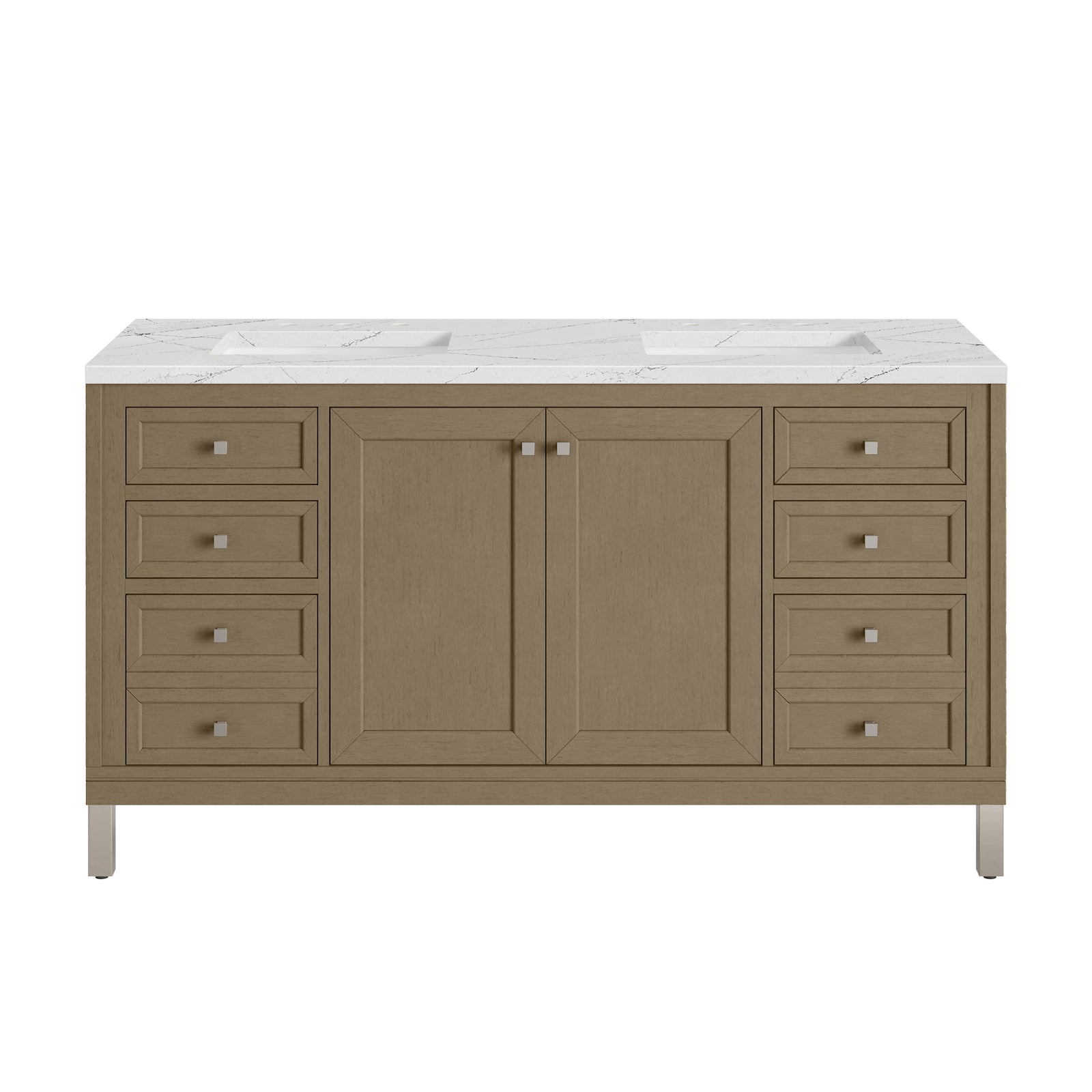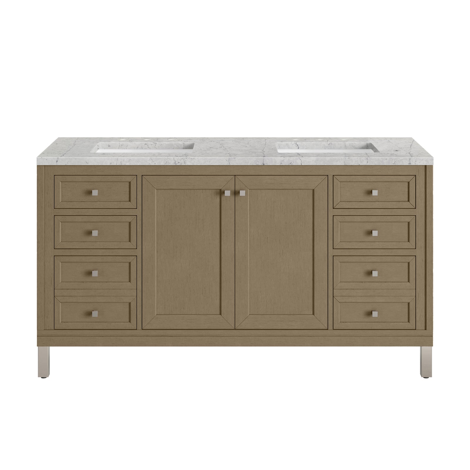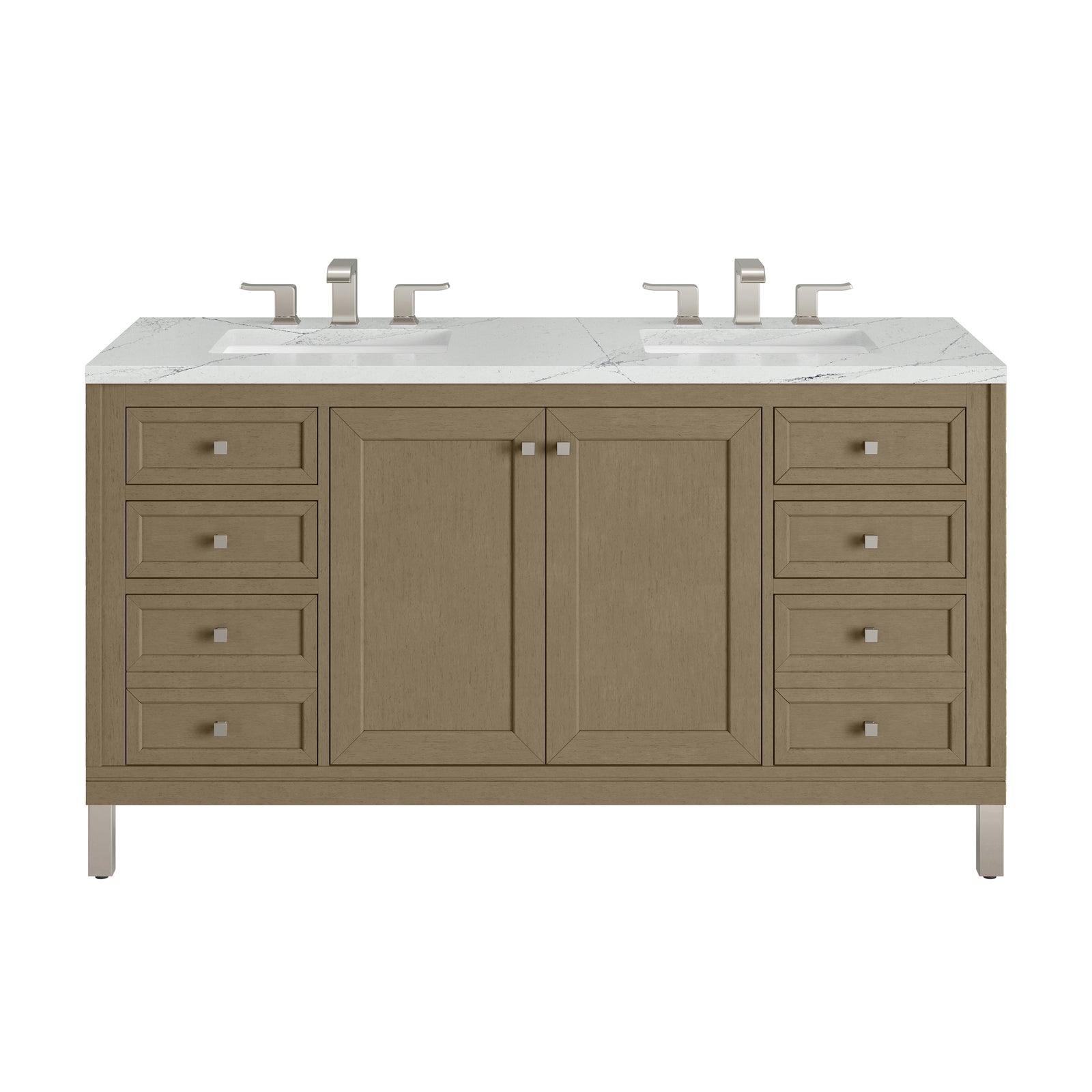 Chicago 60" Double Vanity, Walnut Whisper, w/ 3 CM Eternal Jasmine Pearl SilestoneĀ® Top