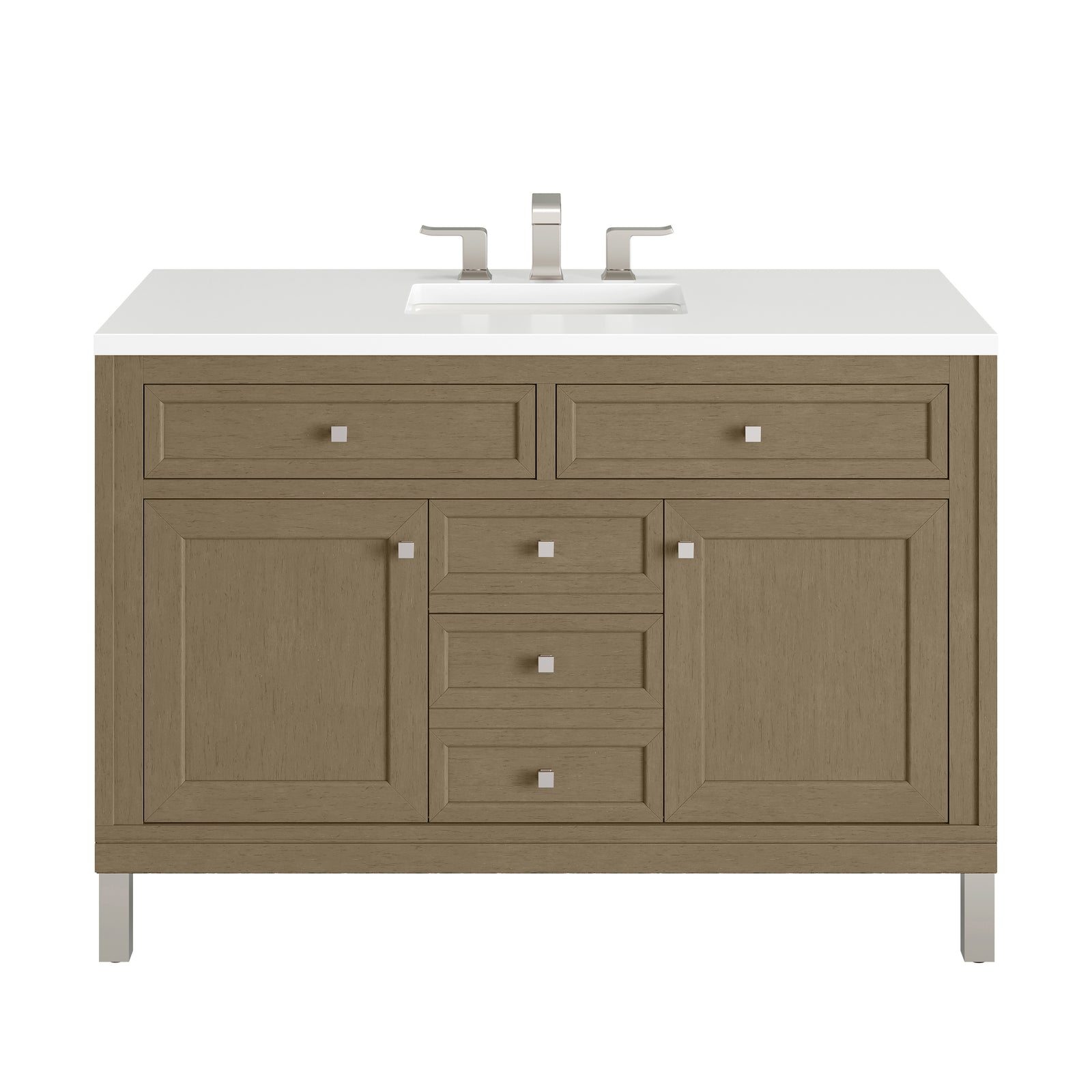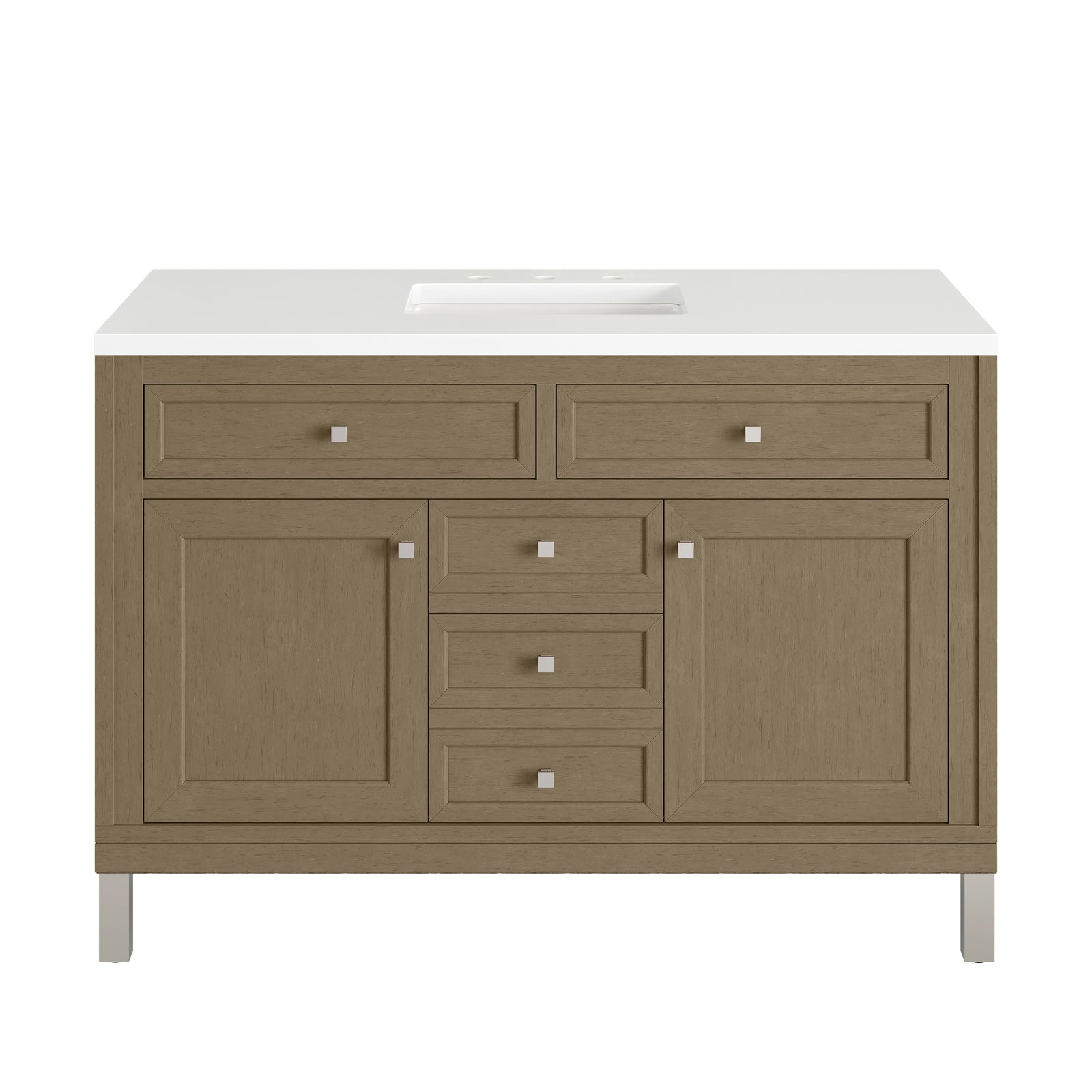 Chicago 48" Single Vanity, Walnut Whisper, w/ 3 CM White Zeus SilestoneĀ® Top