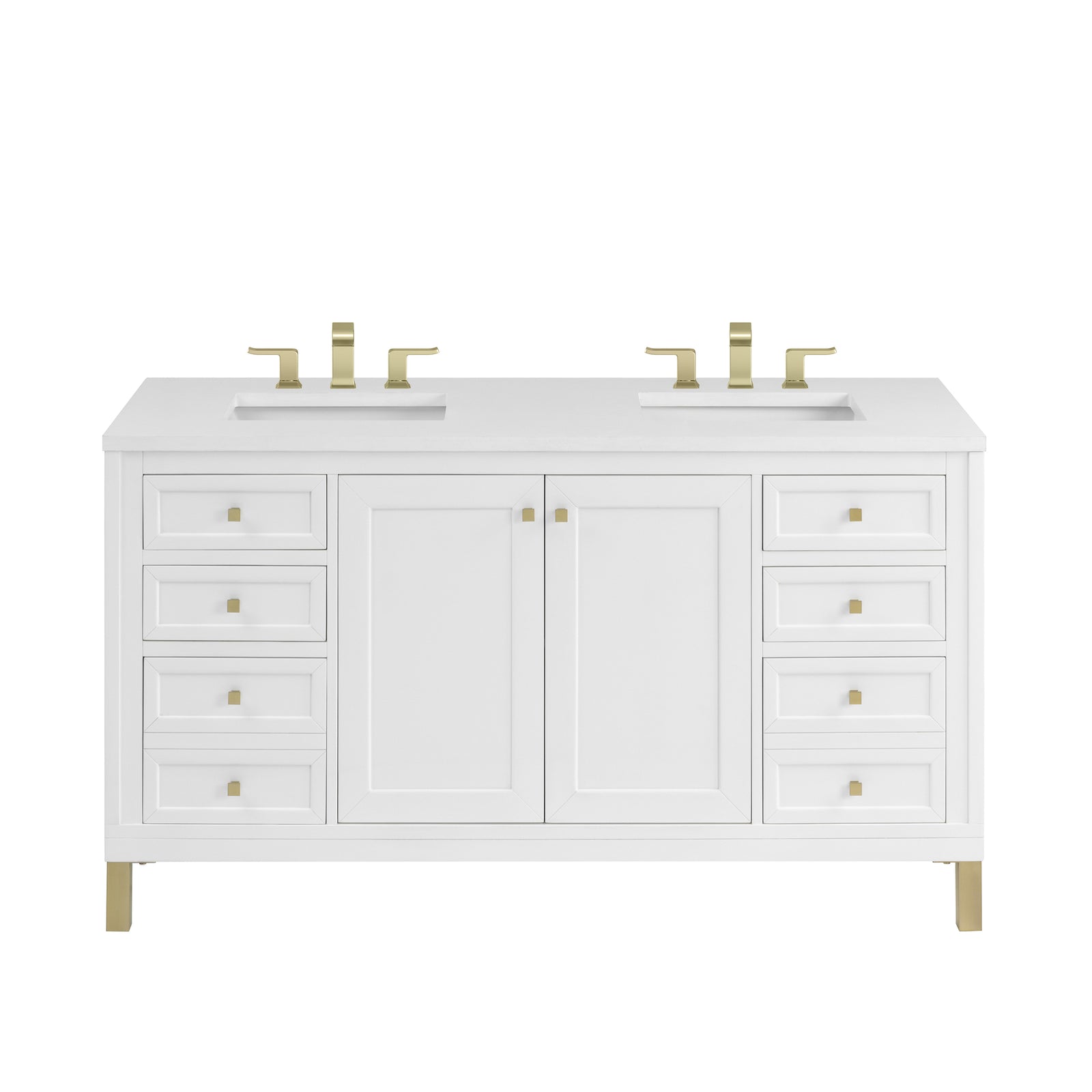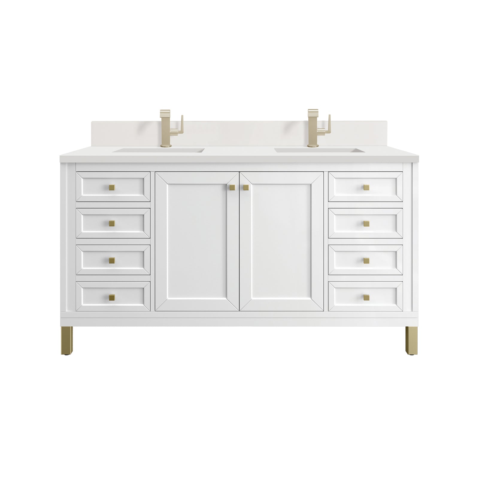 Chicago 60" Double Vanity, Glossy White, w/ 3 CM White Zeus SilestoneĀ® Top