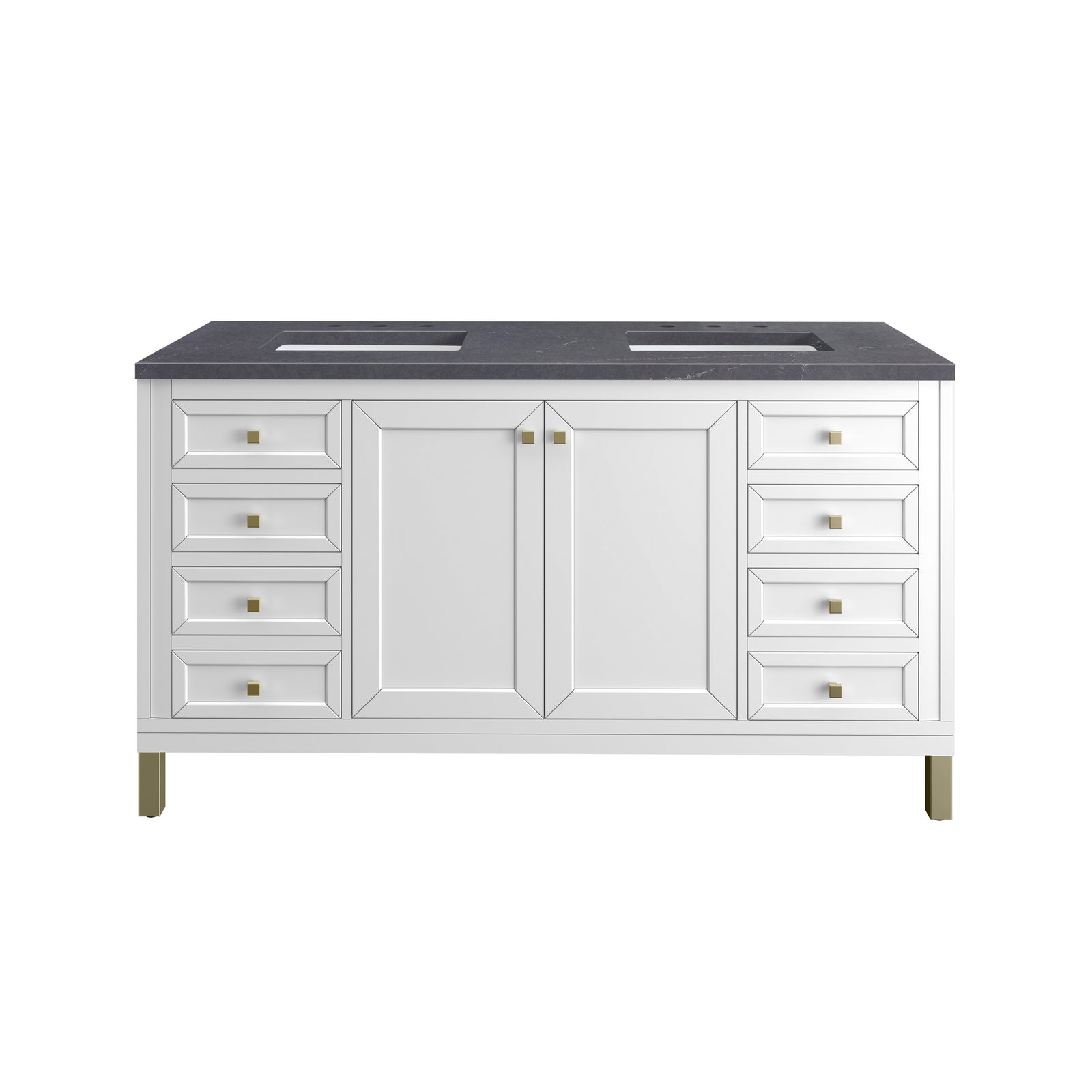 Chicago 60" Double Vanity, Glossy White, w/ 3 CM Charcoal Soapstone SilestoneĀ® Top