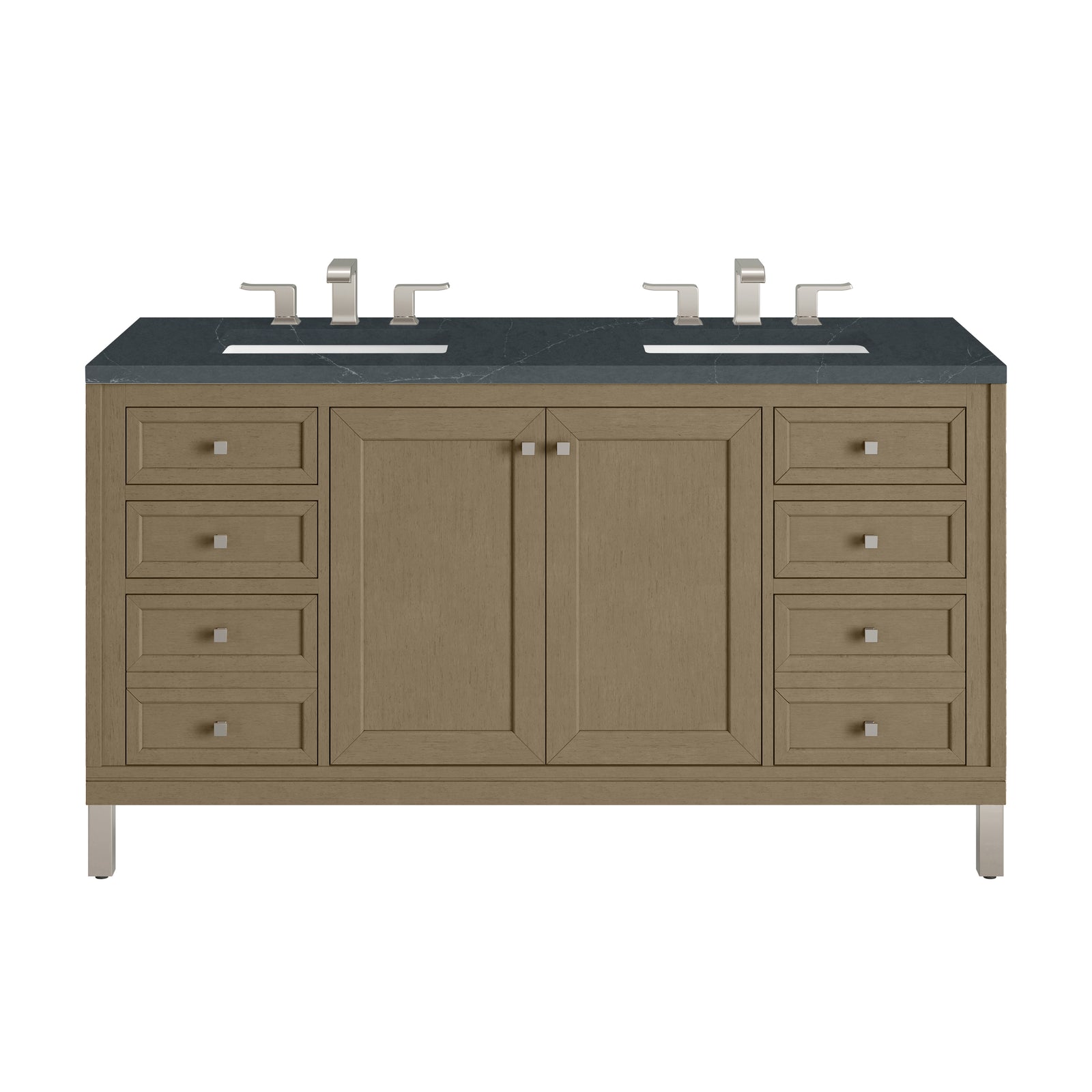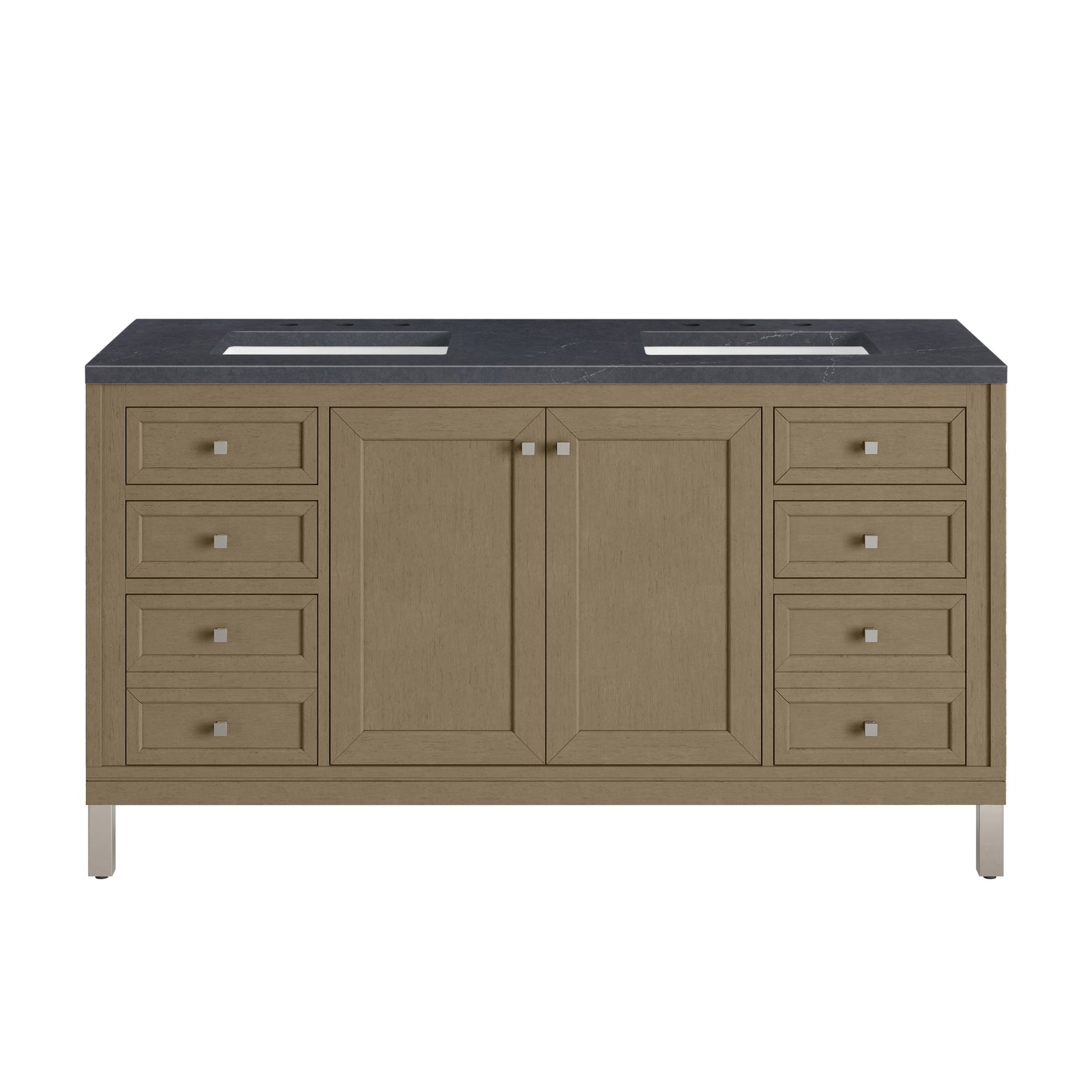 Chicago 60" Double Vanity, Walnut Whisper, w/ 3 CM Charcoal Soapstone SilestoneĀ® Top