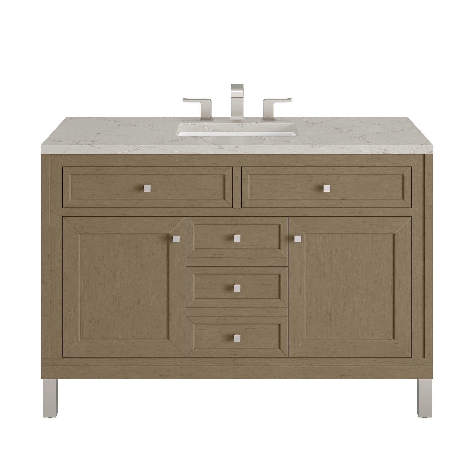 Chicago 48" Single Vanity, Walnut Whisper, w/ 3 CM Victorian Silver SilestoneĀ® Top