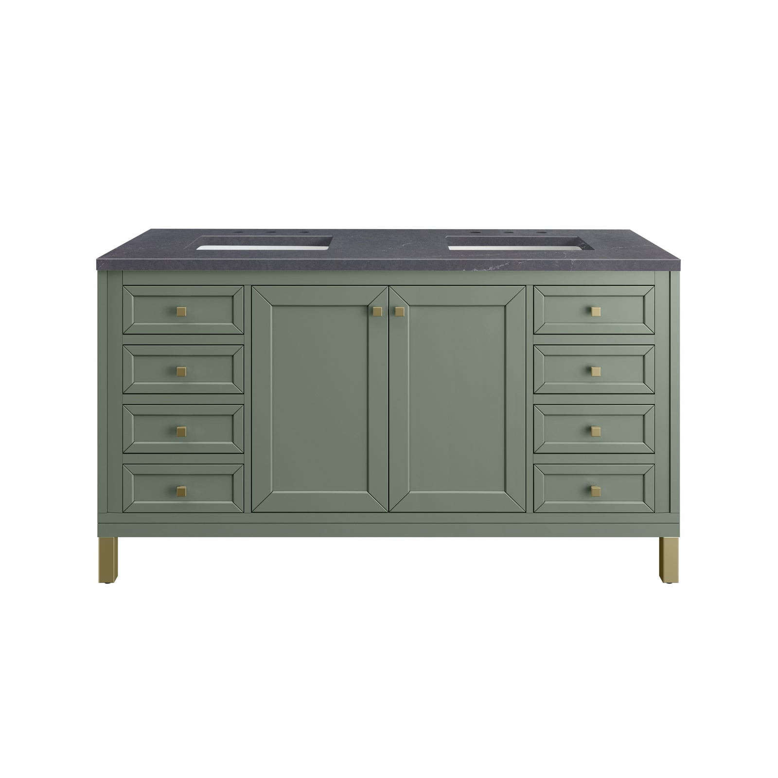 Chicago 60" Double Vanity, Smokey Celadon, w/ 3 CM Charcoal Soapstone SilestoneĀ® Top