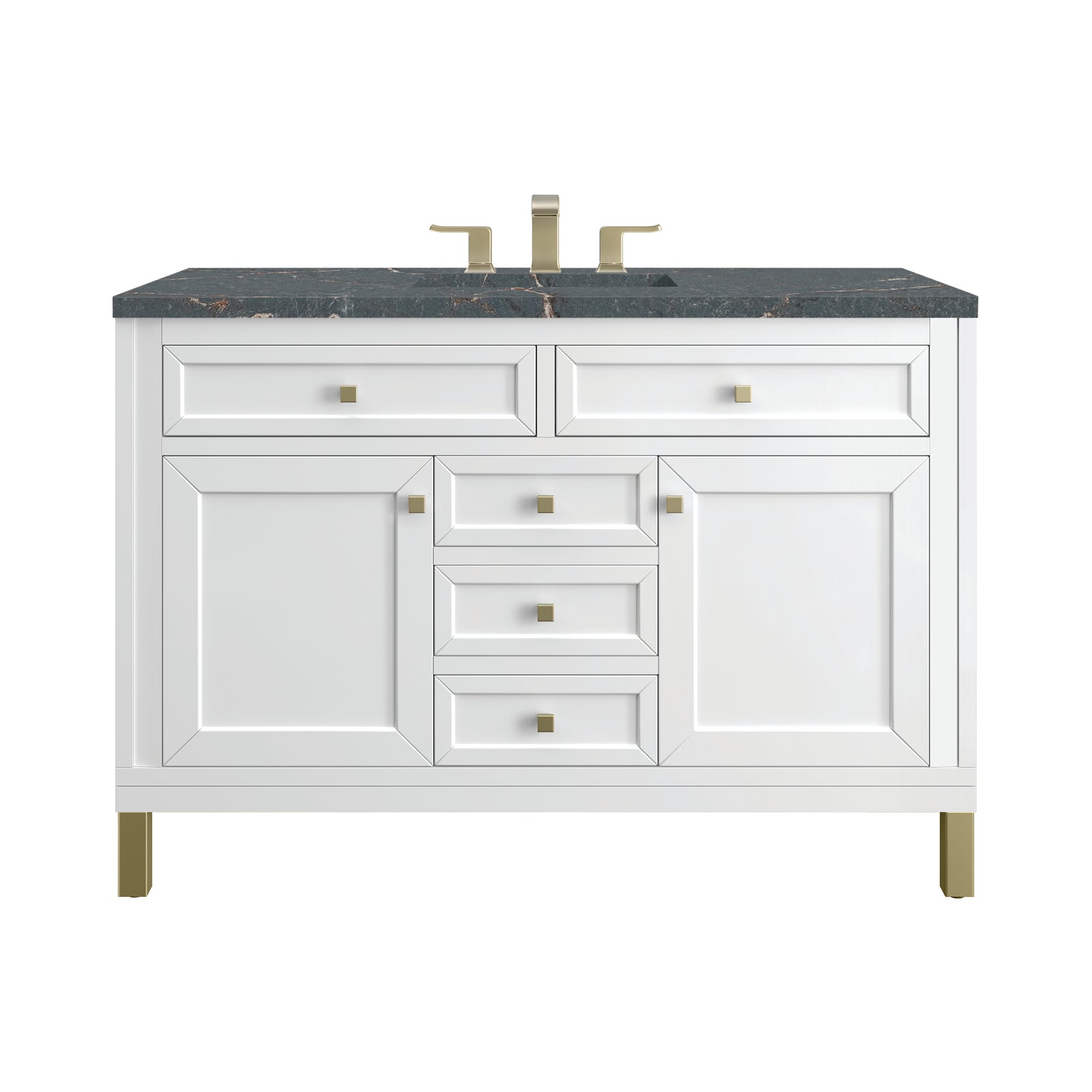 Chicago 48" Single Vanity, Glossy White, w/ 3 CM Charcoal Soapstone SilestoneĀ® Top