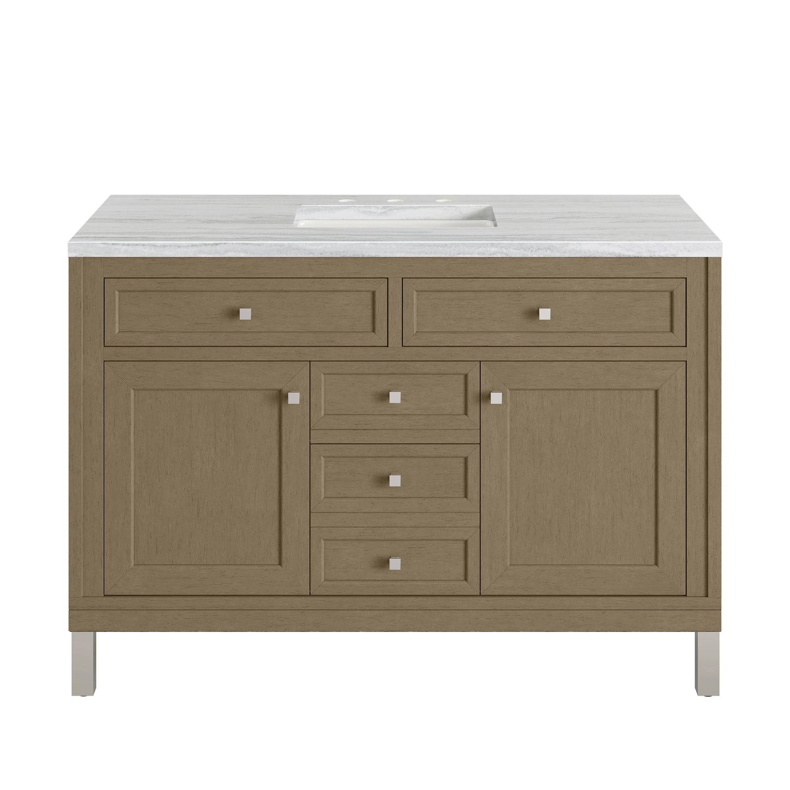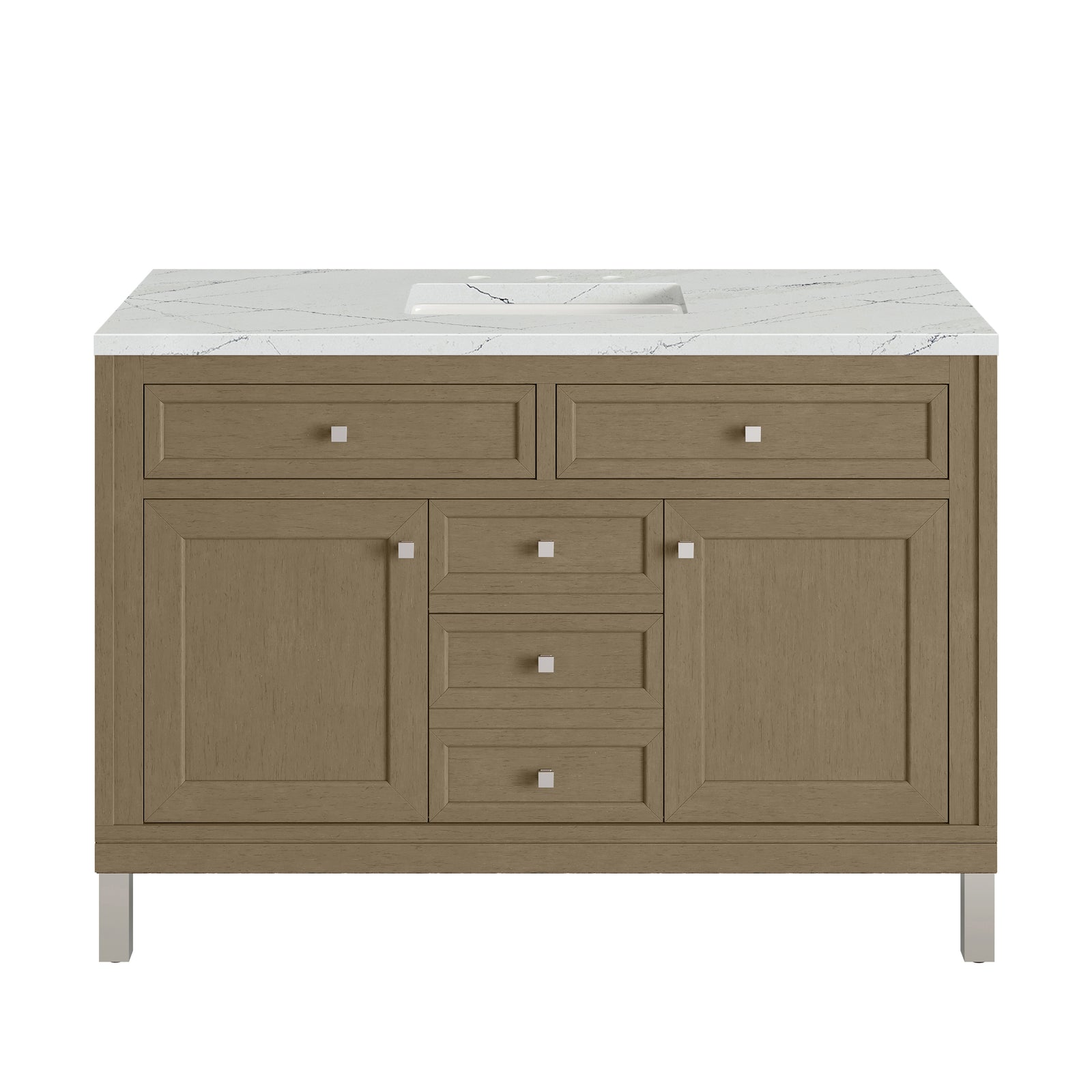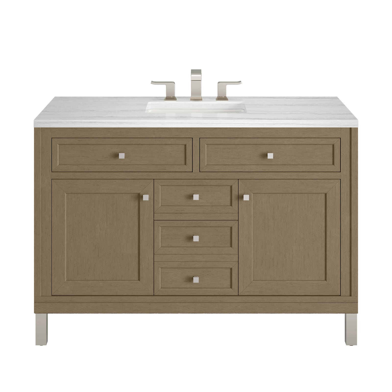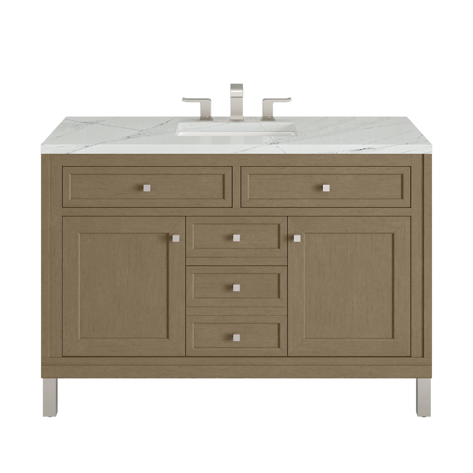 Chicago 48" Single Vanity, Walnut Whisper, w/ 3 CM Eternal Jasmine Pearl SilestoneĀ® Top