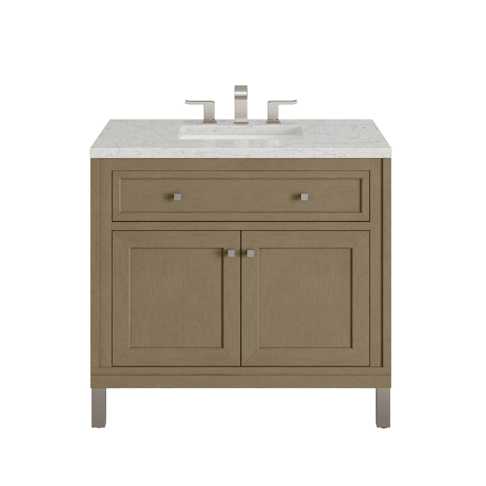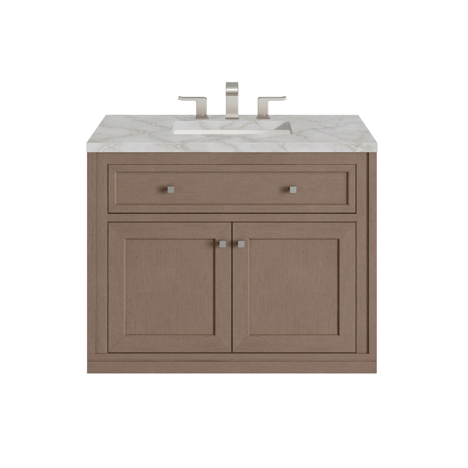 Chicago 36" Single Vanity, Walnut Whisper, w/ 3 CM Eternal Jasmine Pearl SilestoneĀ® Top