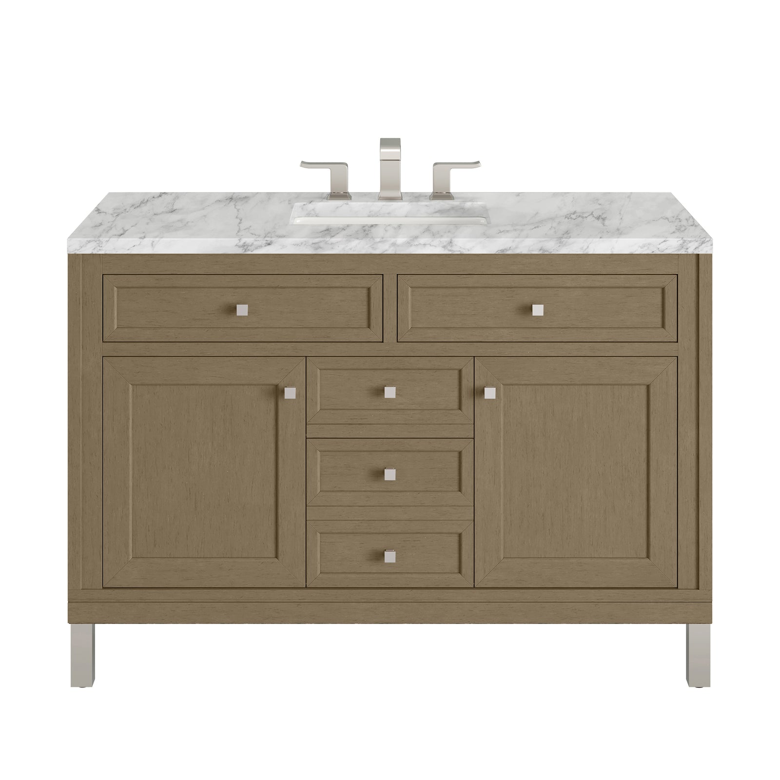 Chicago 48" Single Vanity, Walnut Whisper, w/ 3 CM Carrara Marble Top