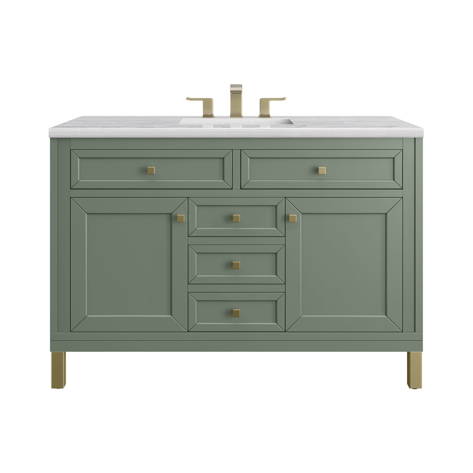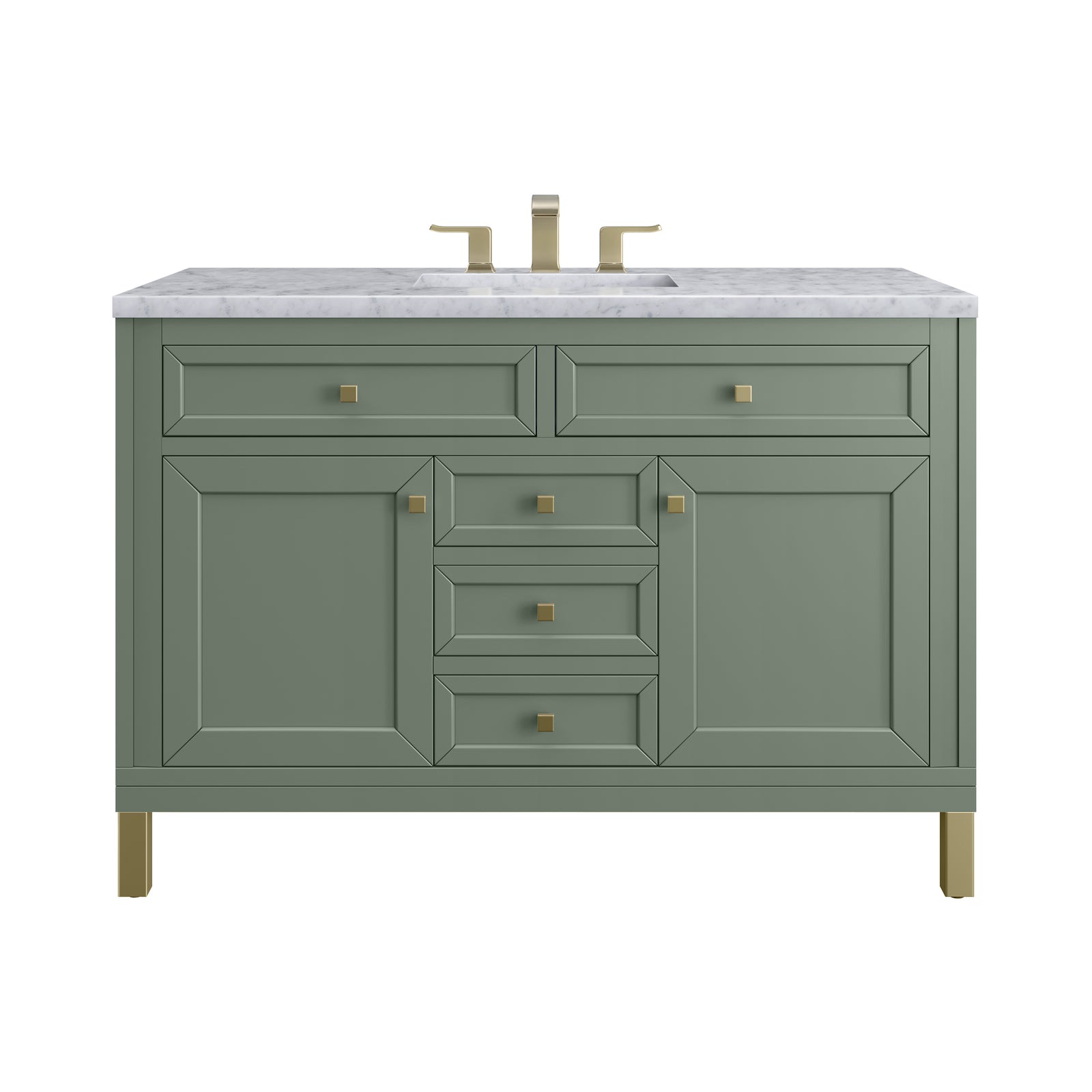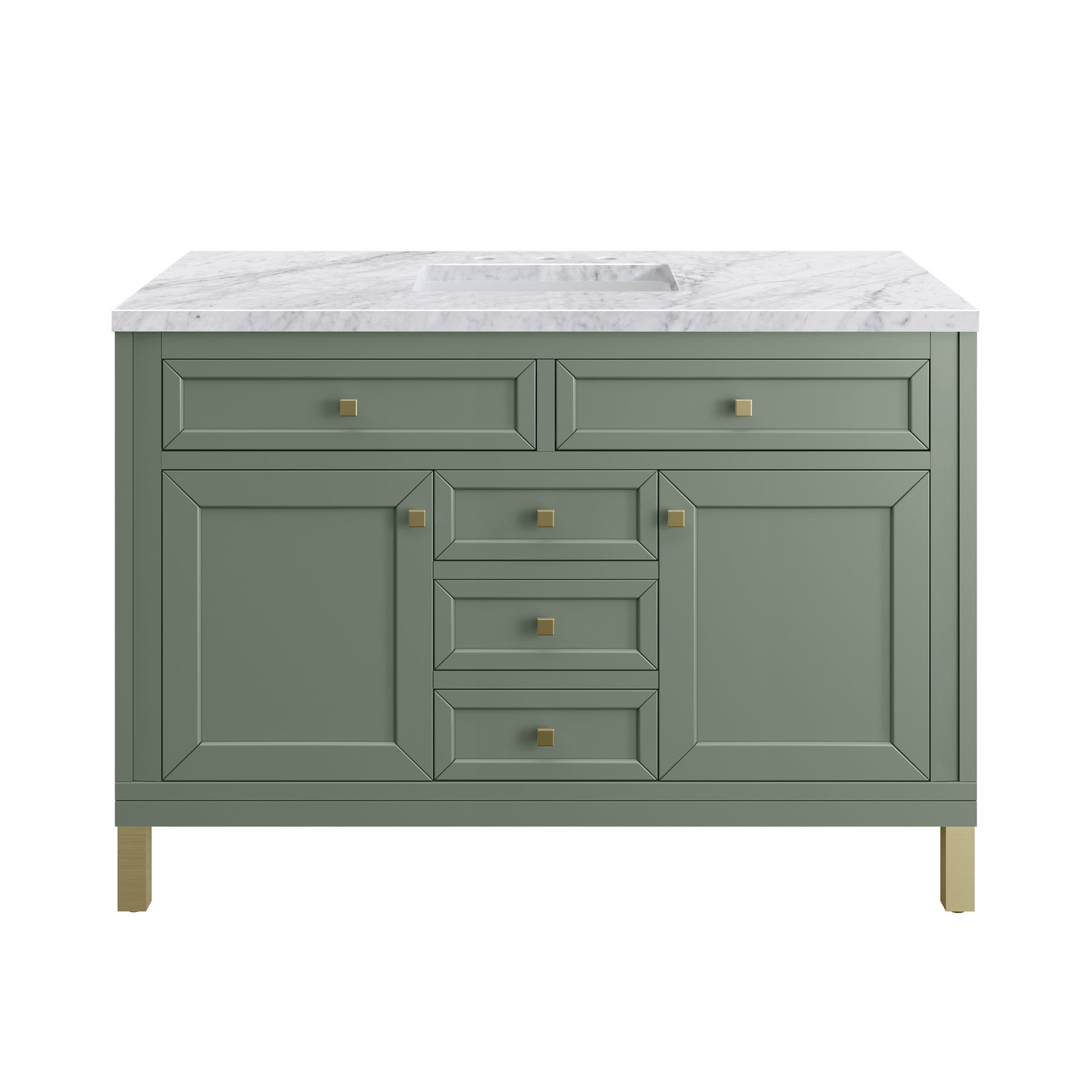 Chicago 48" Single Vanity, Smokey Celadon, w/ 3 CM Carrara Marble Top
