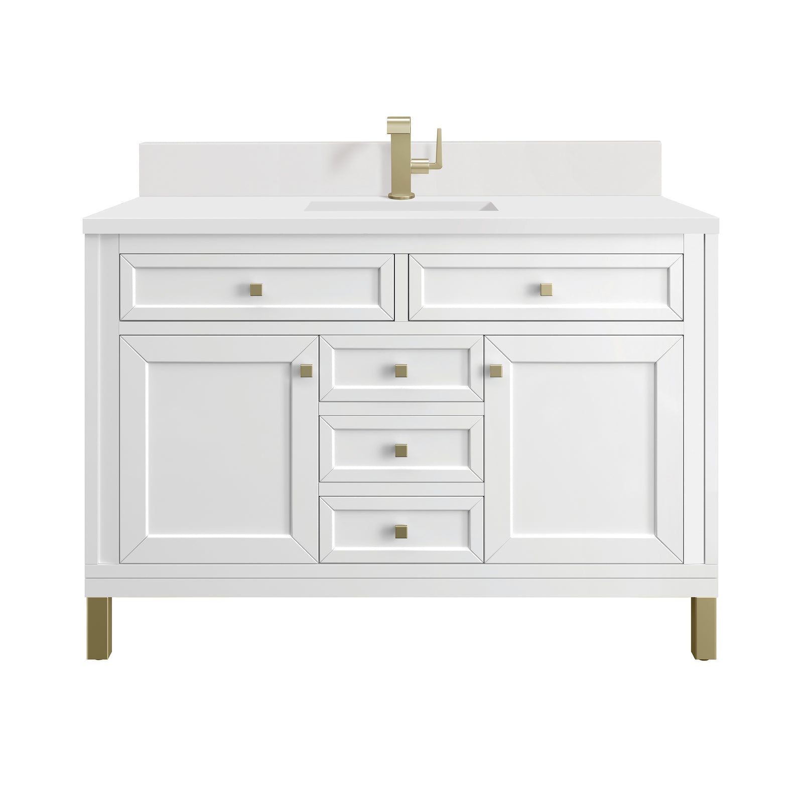 Chicago 48" Single Vanity, Glossy White, w/ 3 CM White Zeus SilestoneĀ® Top