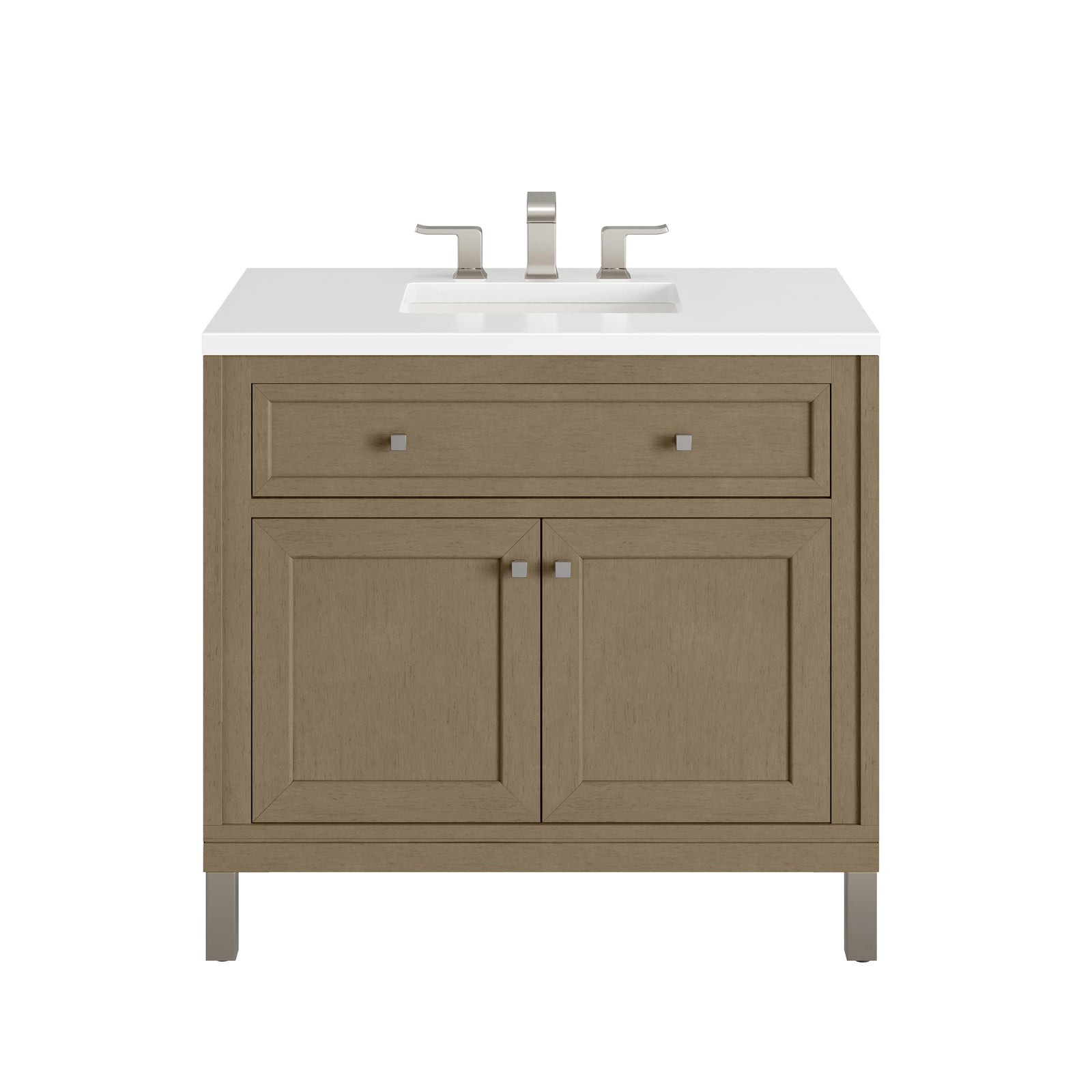 Chicago 36" Single Vanity, Walnut Whisper, w/ 3 CM White Zeus SilestoneĀ® Top