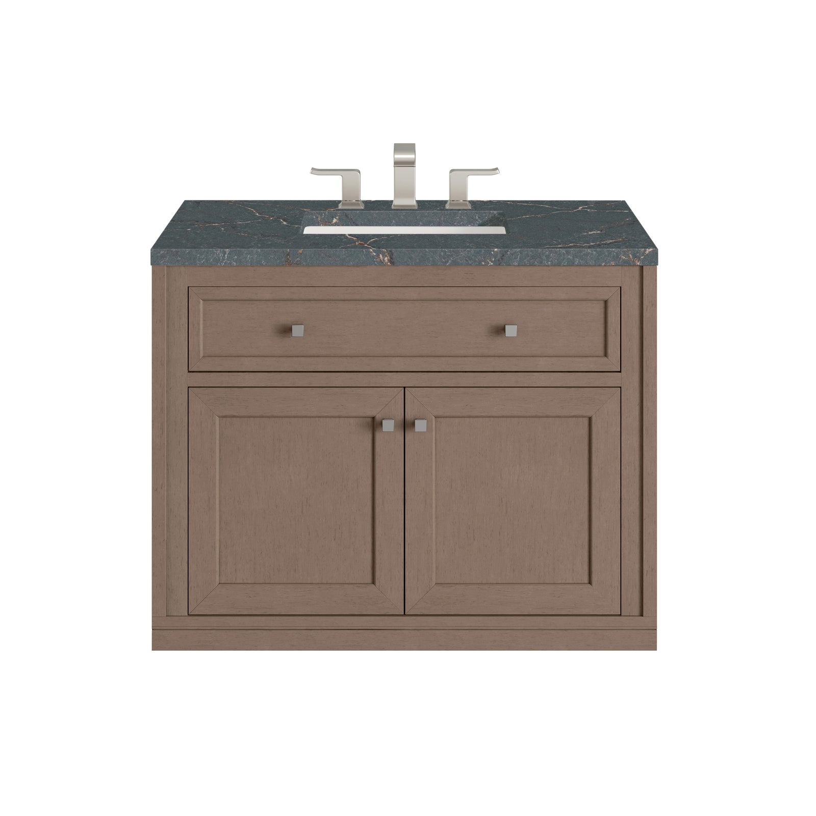 Chicago 36" Single Vanity, Walnut Whisper, w/ 3 CM Parisien Bleu SilestoneĀ® Top