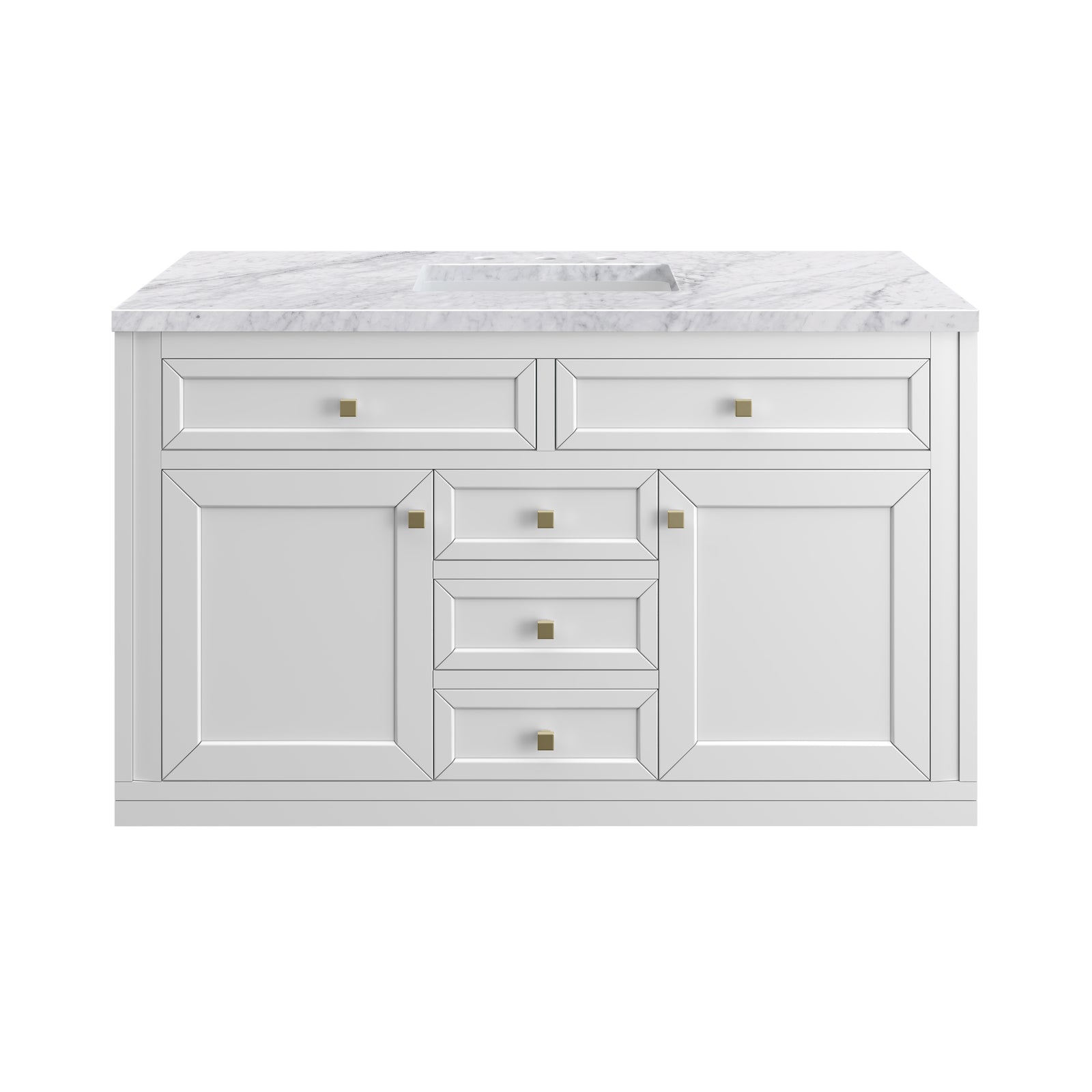 Chicago 48" Single Vanity, Glossy White, w/ 3 CM Carrara Marble Top