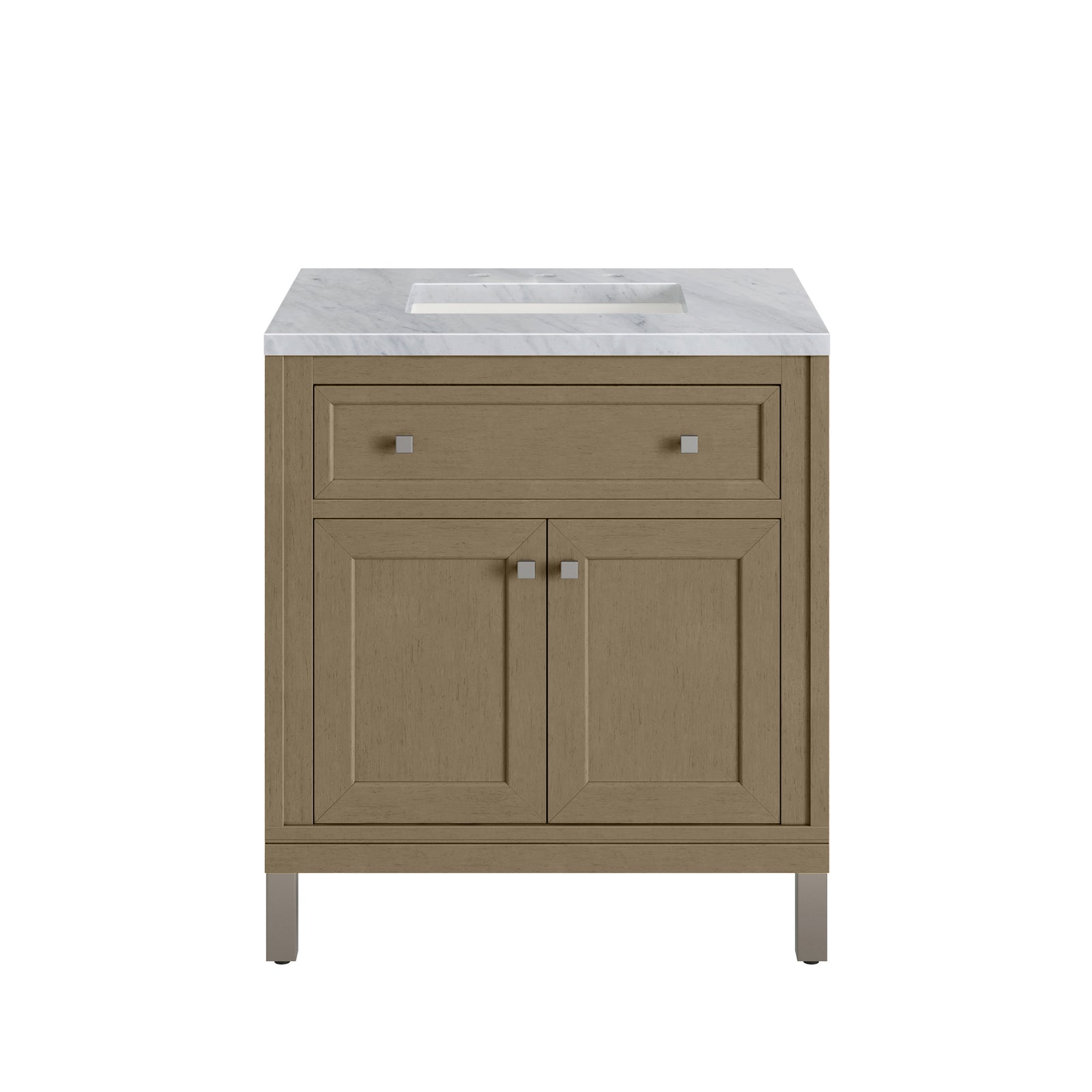 Chicago 30" Single Vanity, Walnut Whisper, w/ 3 CM Carrara Marble Top
