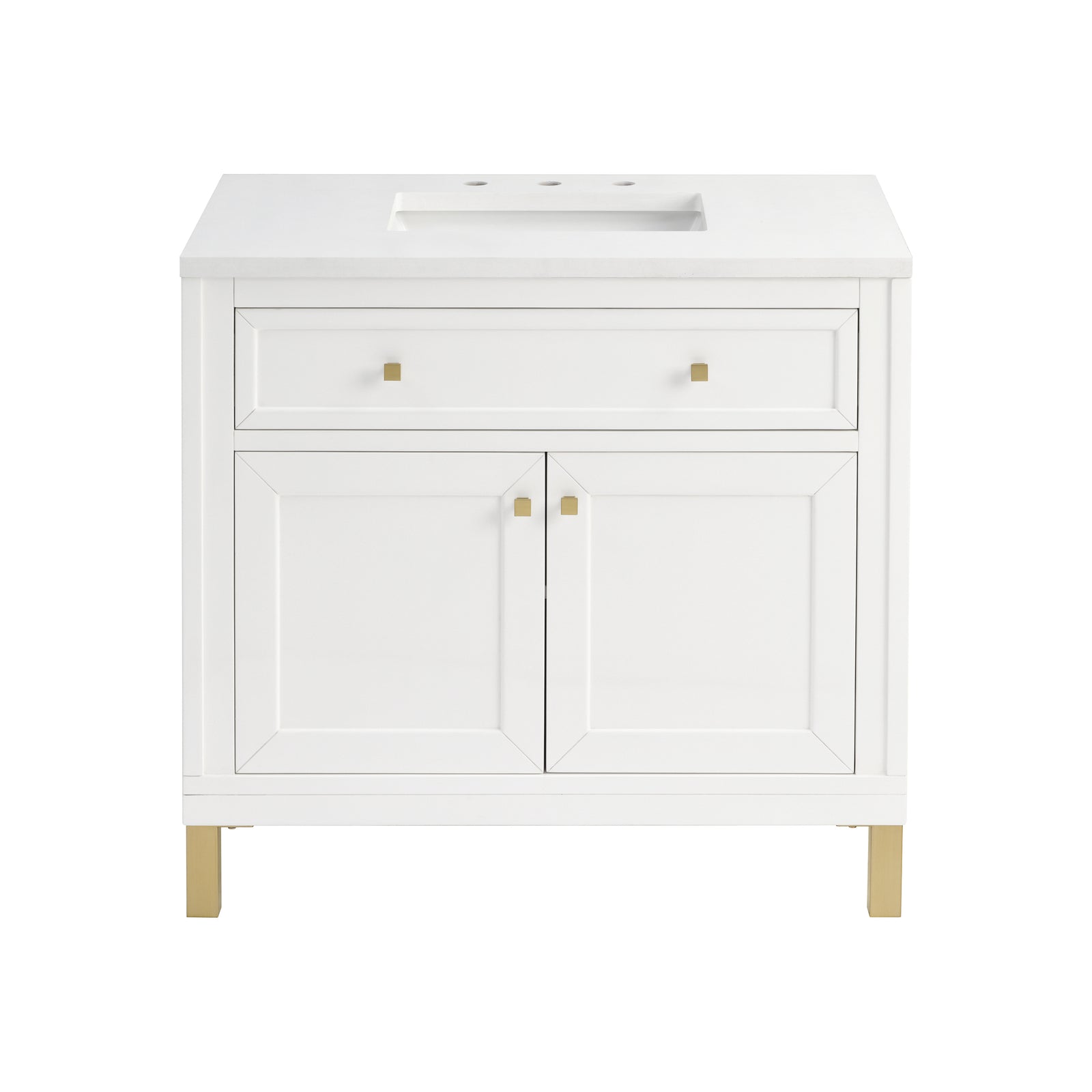 Chicago 36" Single Vanity, Glossy White, w/ 3 CM White Zeus SilestoneĀ® Top