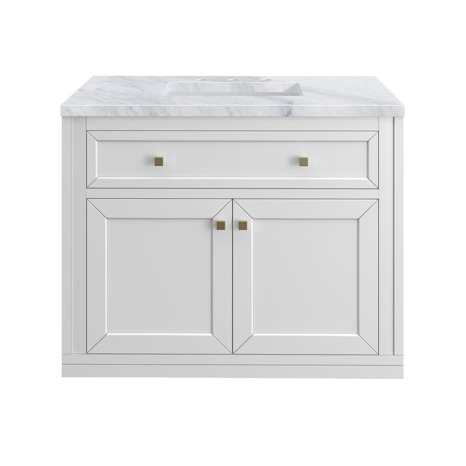 Chicago 36" Single Vanity, Glossy White, w/ 3 CM Carrara Marble Top