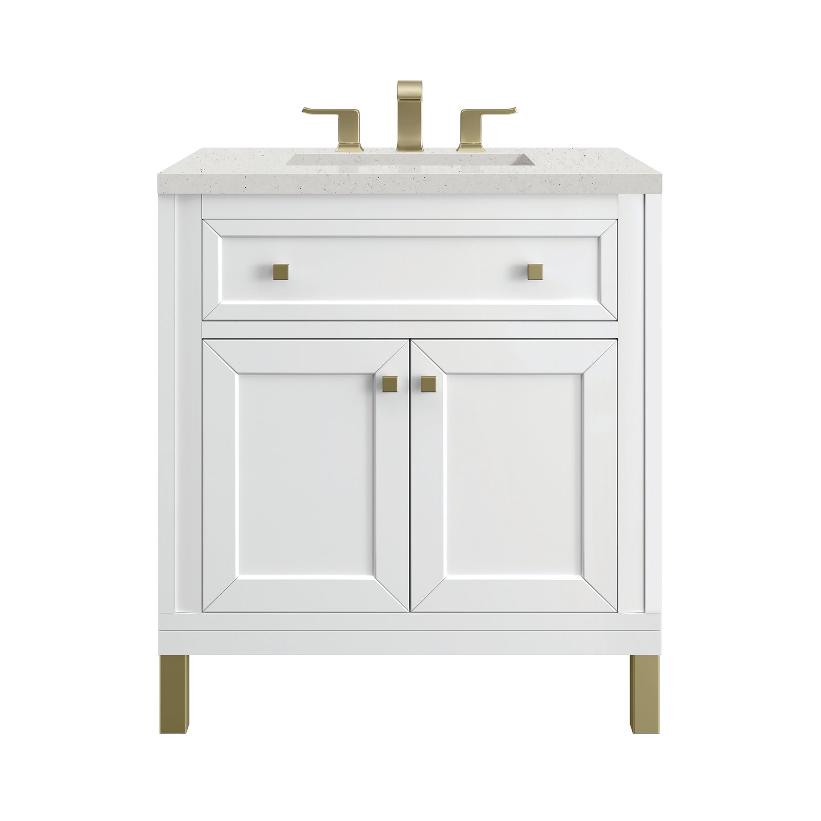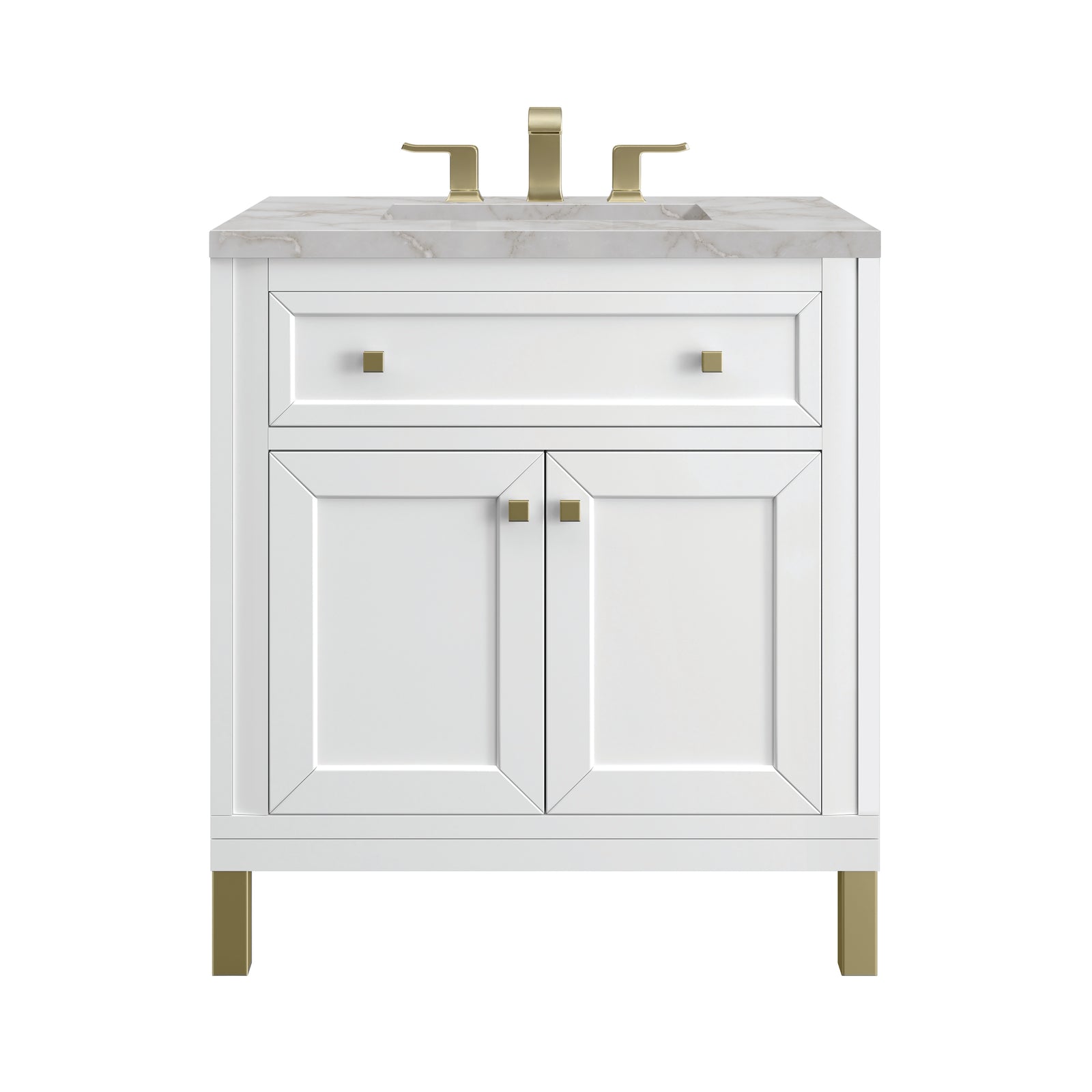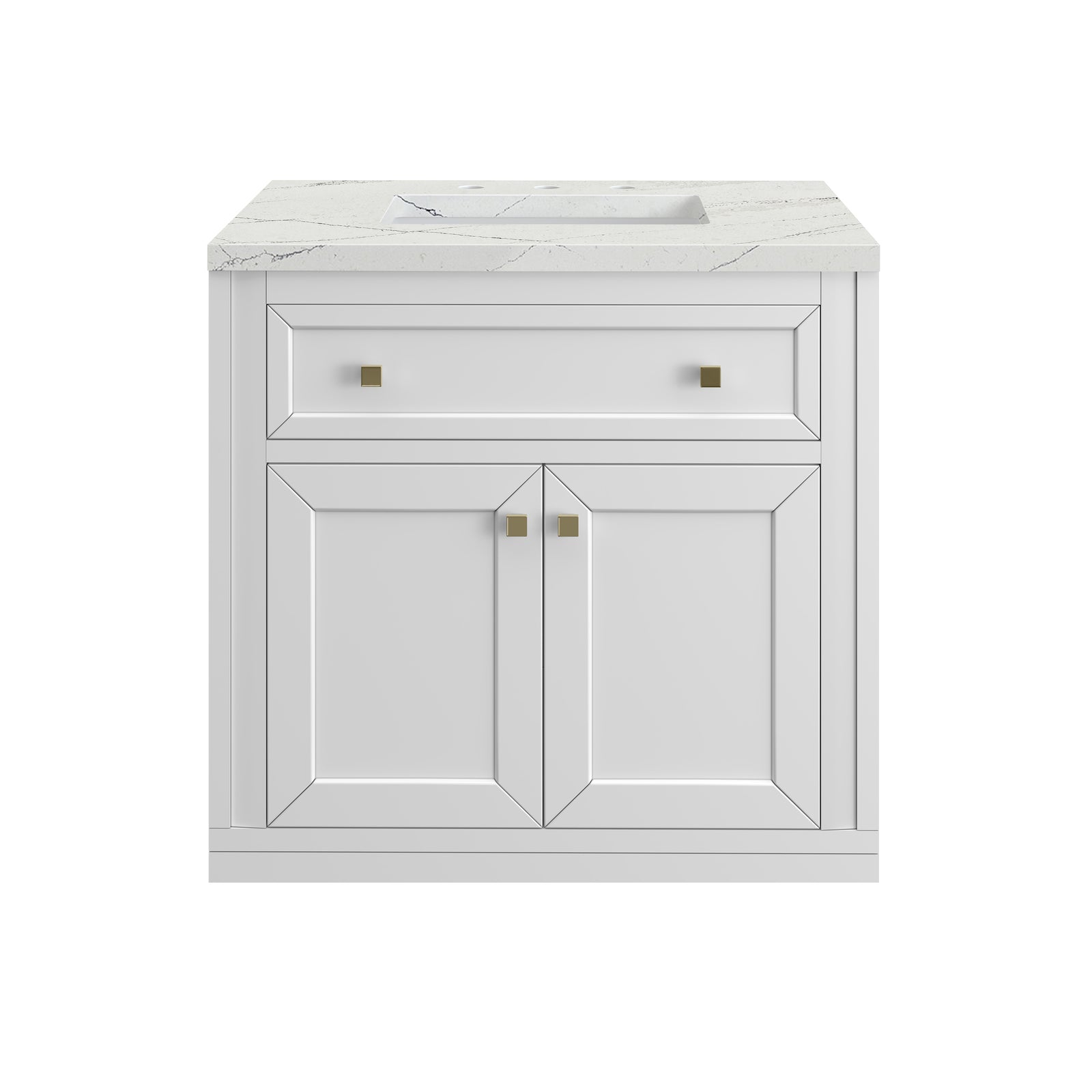 Chicago 30" Single Vanity, Glossy White, w/ 3 CM White Zeus SilestoneĀ® Top