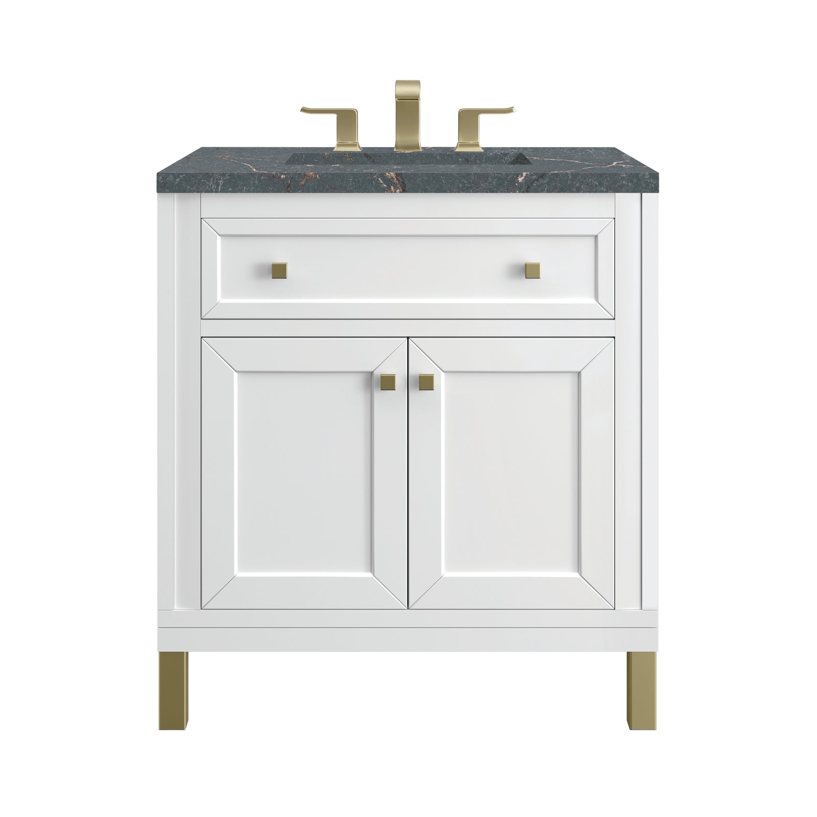 Chicago 30" Single Vanity, Glossy White, w/ 3 CM Charcoal Soapstone SilestoneĀ® Top