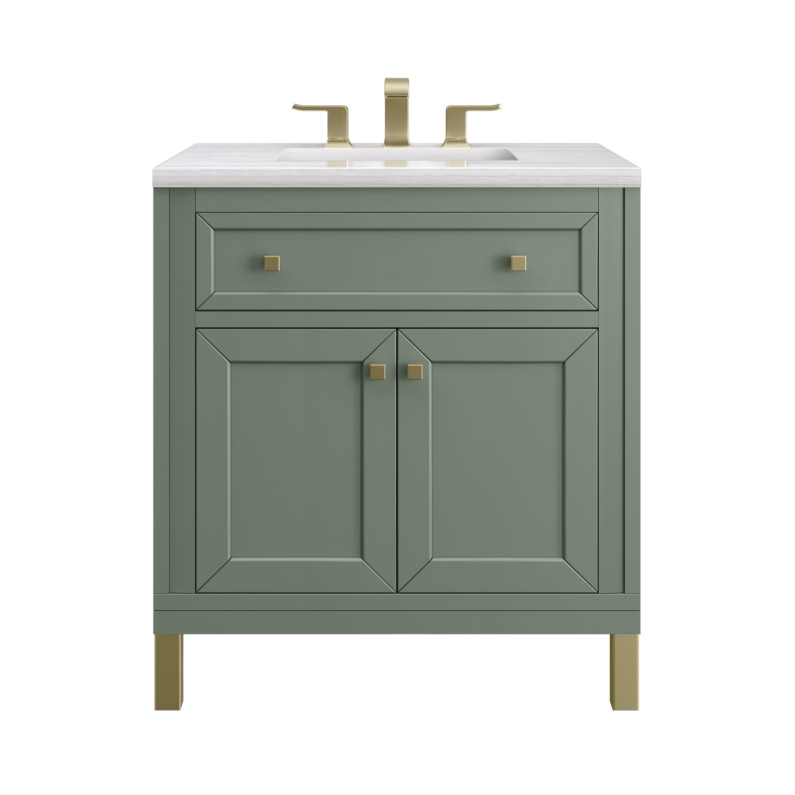 Chicago 30" Single Vanity, Smokey Celadon, w/ 3 CM Carrara Marble Top