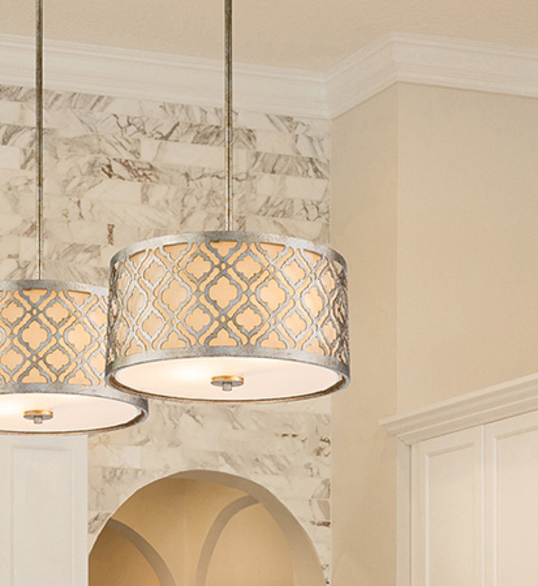 This collection is a charming, vintage inspired design that features unique metal work and uses a weathered, multi-layered Finish. The beautifully designed Arabella series has a distressed silver metal outer shade with a cream linen inner shade and glass diffuser to soften the light. This medium pendant can easily be converted into a semi-flush mount and has an adjustable height of up to 52" to allow for many table and ceiling heights. Our antique silver finish allows this retro inspired pendant to move easily from traditional to modern decor, elevating your space to reflect your on-trend style.